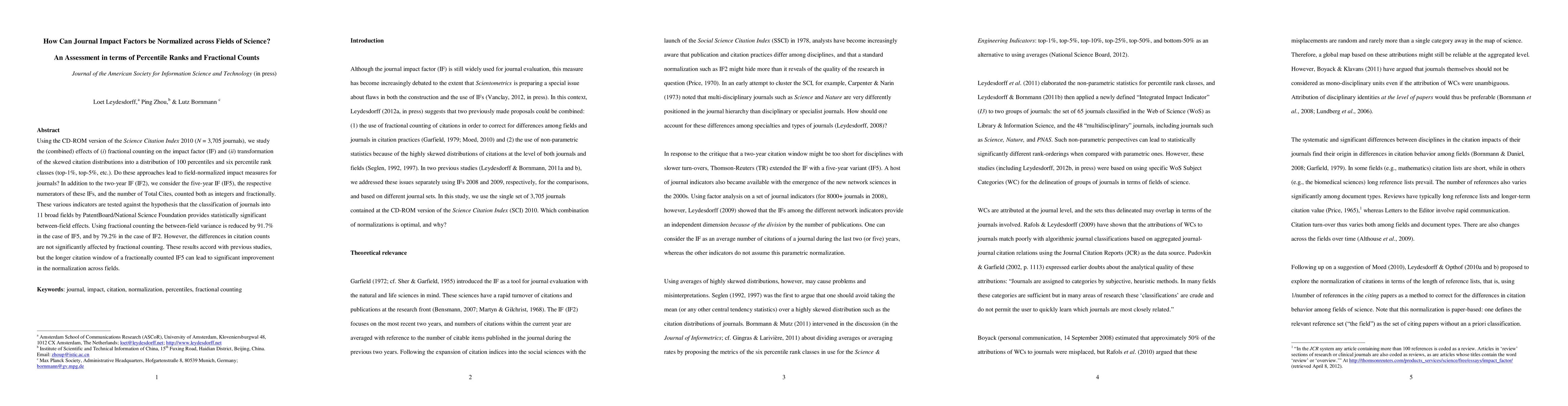This study investigates whether fractional counting and percentile rank transformation can normalize journal impact factors across scientific fields. The results show that fractional counting significantly reduces between-field variance in impact factors, especially over a five-year window, but does not significantly alter citation counts.