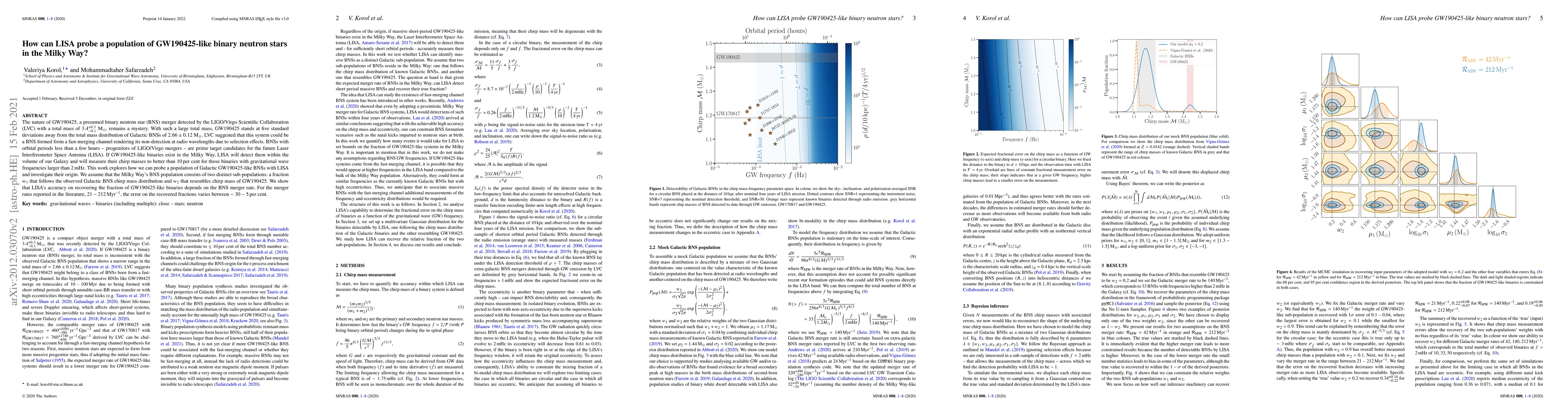 This paper explores how LISA can detect and study a population of GW190425-like binary neutron star mergers in the Milky Way, focusing on their distinct chirp mass distribution. LISA's ability to accurately measure these binaries' chirp masses depends on the BNS merger rate, with errors ranging from 30% to 5% for reported rates.