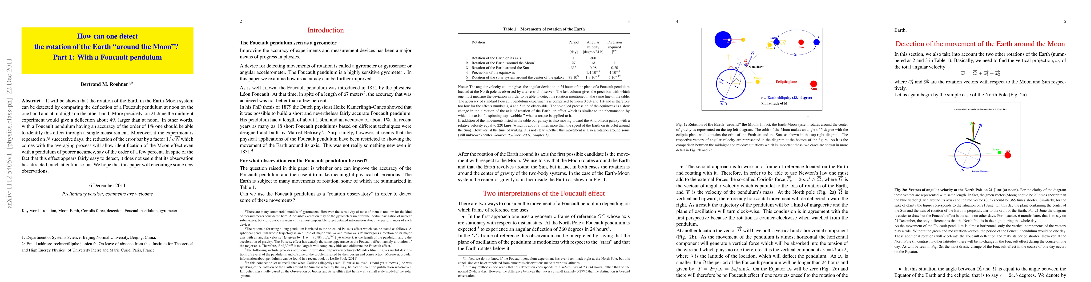 It will be shown that the rotation of the Earth in the Earth-Moon system can be detected by comparing the deflection of a Foucault pendulum at noon on the one hand and at midnight on the other hand. More precisely, on 21 June the midnight experiment would give a deflection about 4% larger than at noon. In other words, with a Foucault pendulum having an accuracy of the order of 1% one should be able to identify this effect through a single measurement. Moreover, if the experiment is repeated on N successive days, the division of the error bar by the square-root of N which comes with the averaging process will allow identification of the Moon effect even with a pendulum of poorer accuracy, say of the order of a few percent. In spite of the fact that this effect appears fairly easy to detect, it does not seem that its observation has attracted much attention so far. We hope that this paper will encourage some new observations.