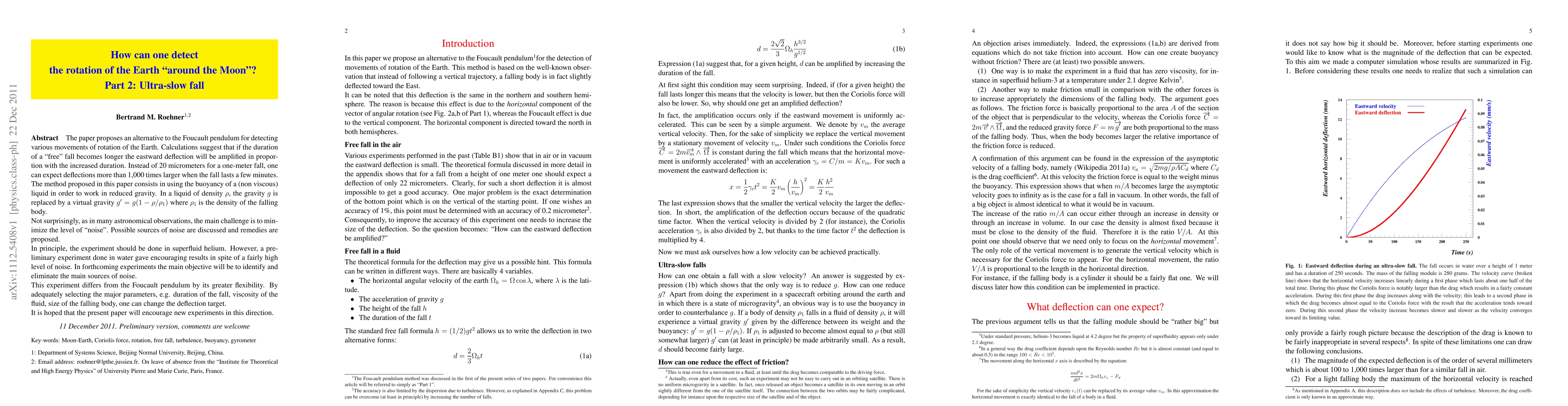 The paper proposes an alternative to the Foucault pendulum for detecting various movements of rotation of the Earth. Calculations suggest that if the duration of a "free" fall becomes longer the eastward deflection will be amplified in proportion with the increased duration. Instead of 20 micrometers for a one-meter fall, one can expect deflections more than 1,000 times larger when the fall lasts a few minutes. The method proposed in this paper consists in using the buoyancy of a (non viscous) liquid in order to work in reduced gravity. Not surprisingly, as in many astronomical observations, the main challenge is to minimize the level of "noise". Possible sources of noise are discussed and remedies are proposed. In principle, the experiment should be done in superfluid helium. However, a preliminary experiment done in water gave encouraging results in spite of a fairly high level of noise. In forthcoming experiments the main objective will be to identify and eliminate the main sources of noise. This experiment differs from the Foucault pendulum by its greater flexibility. By adequately selecting the major parameters, e.g. duration of the fall, viscosity of the fluid, size of the falling body, one can change the deflection target. It is hoped that the present paper will encourage new experiments in this direction.