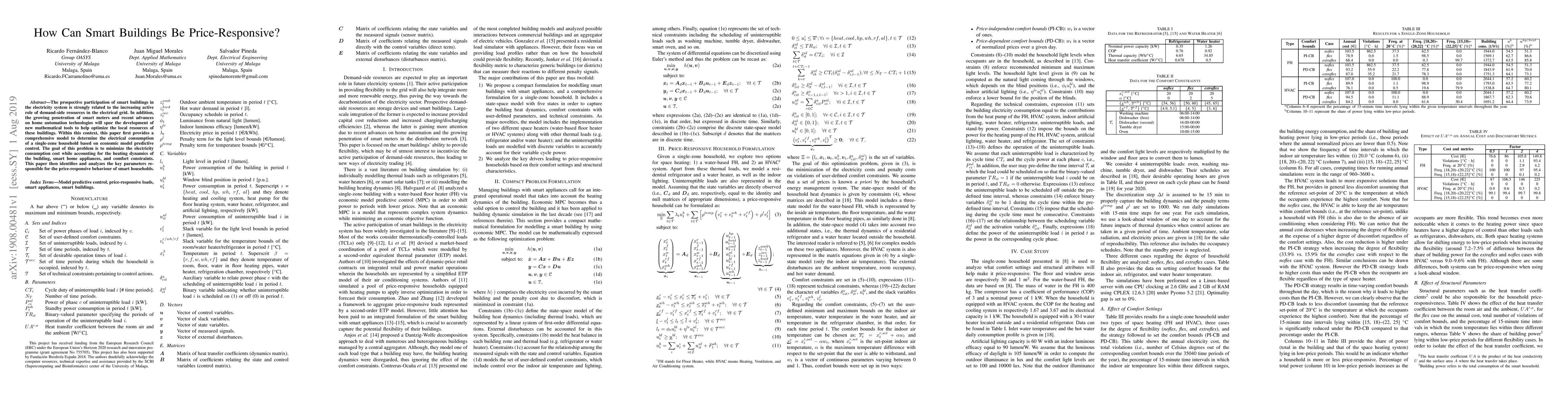 This paper develops a comprehensive model using economic model predictive control to optimize the electricity consumption of smart buildings, aiming to minimize costs while considering heating dynamics, appliance usage, and comfort. It identifies key parameters influencing the price-responsive behavior of smart households.