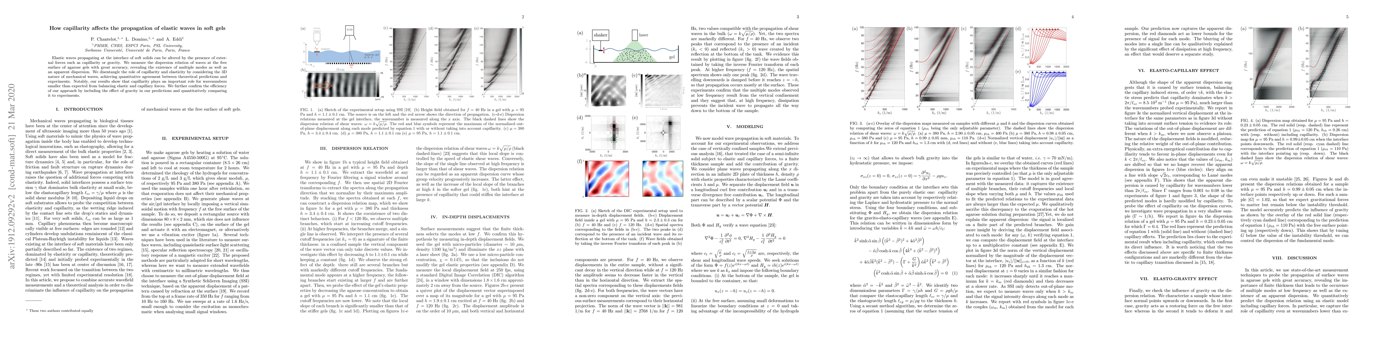 This paper investigates how capillarity influences the propagation of elastic waves in soft agarose gels, revealing multiple wave modes and dispersion. The study demonstrates that capillarity significantly affects wave propagation at lower wavenumbers than expected, achieving quantitative agreement between theory and experiment, and also considers the impact of gravity.