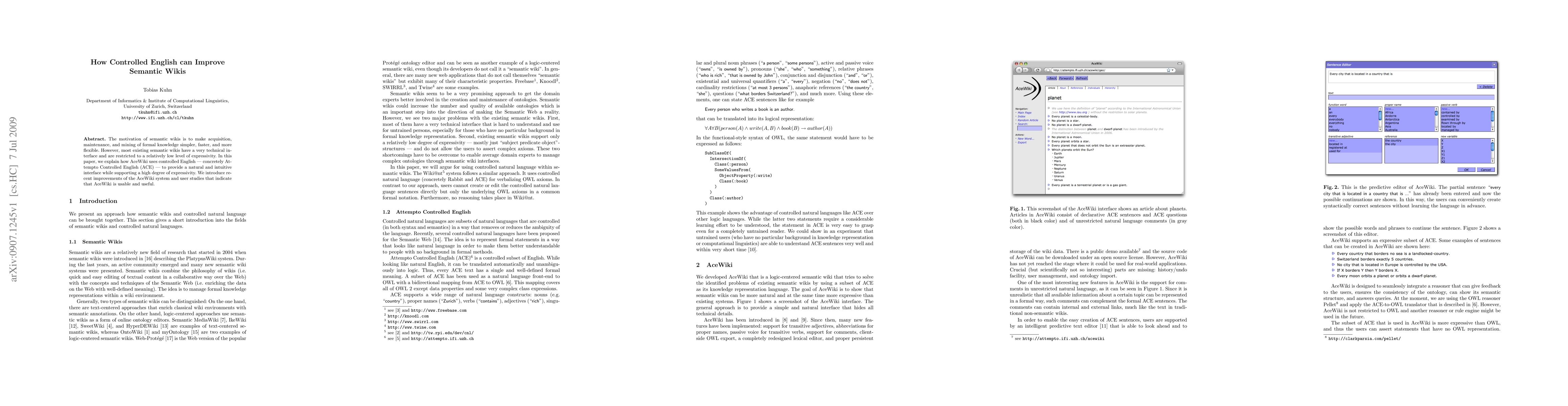 This paper explores how AceWiki leverages Attempto Controlled English (ACE) to create a natural interface for semantic wikis, enhancing both usability and expressivity while maintaining technical rigor. Recent improvements and user studies demonstrate the system's effectiveness and user satisfaction.