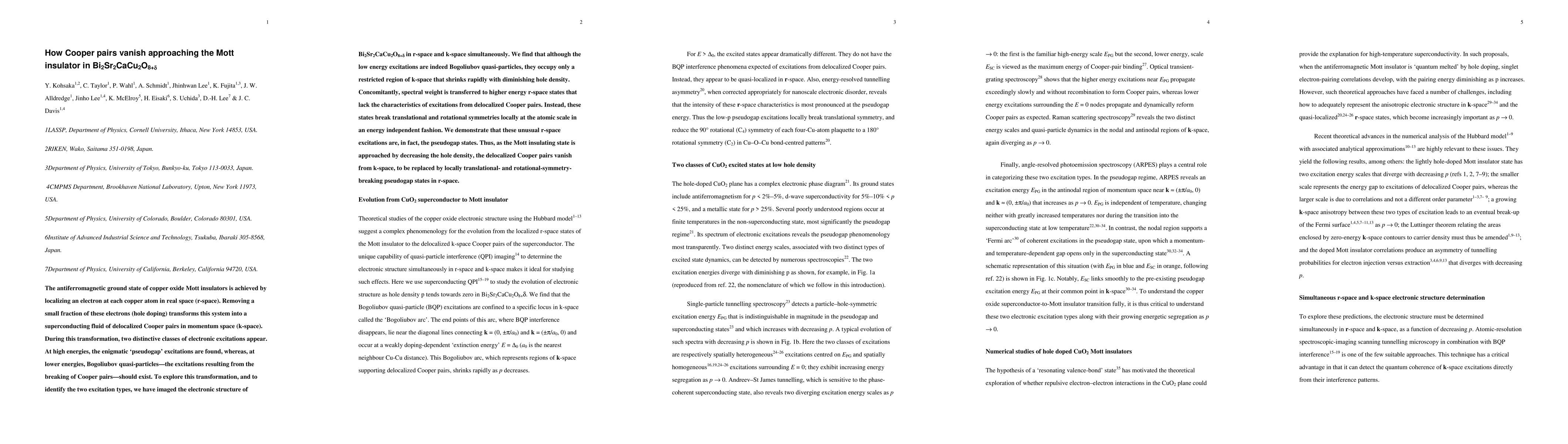 Researchers studied how Cooper pairs in a copper oxide material transform into pseudogap states as it approaches its insulating state, revealing unique electronic excitations.