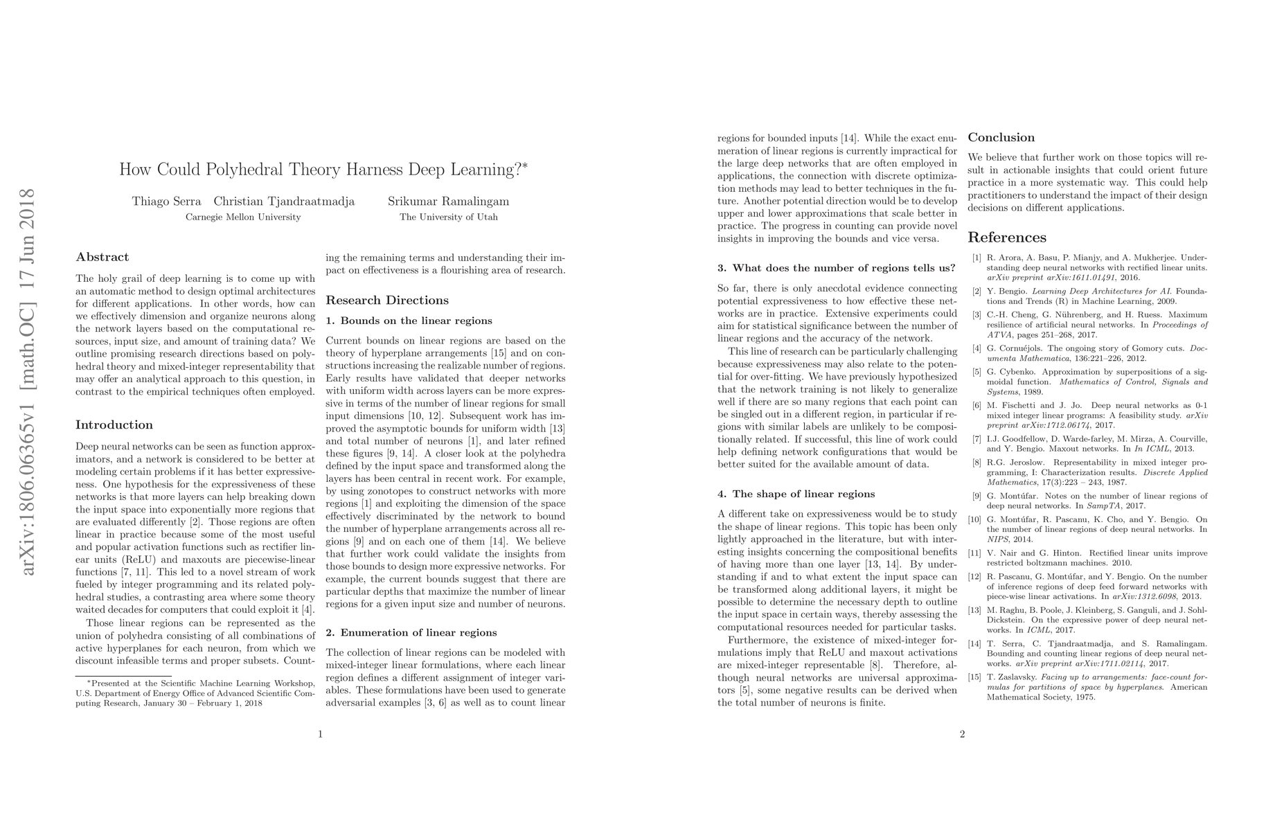 The holy grail of deep learning is to come up with an automatic method to design optimal architectures for different applications. In other words, how can we effectively dimension and organize neurons along the network layers based on the computational resources, input size, and amount of training data? We outline promising research directions based on polyhedral theory and mixed-integer representability that may offer an analytical approach to this question, in contrast to the empirical techniques often employed.