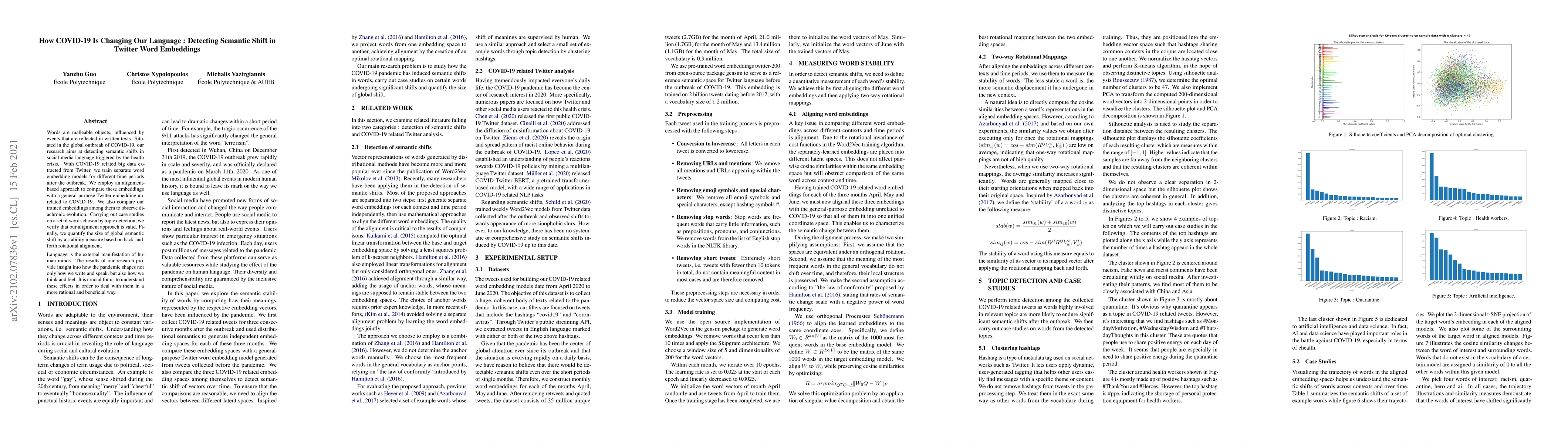 This research investigates semantic shifts in Twitter language during the COVID-19 pandemic by training word embedding models for different post-outbreak periods and comparing them to a general-purpose model. The study verifies shifts through case studies and measures global semantic change using rotational alignment.