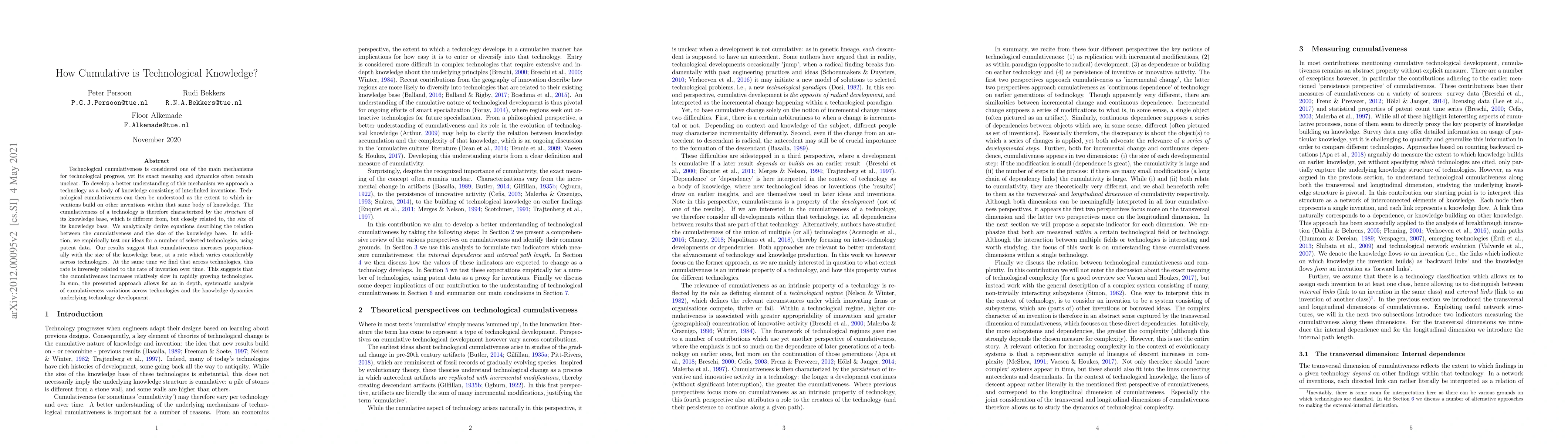 Research reveals that technological cumulativeness increases proportionally with a technology's knowledge base size, but at varying rates across technologies, and tends to slow down in rapidly growing fields.
