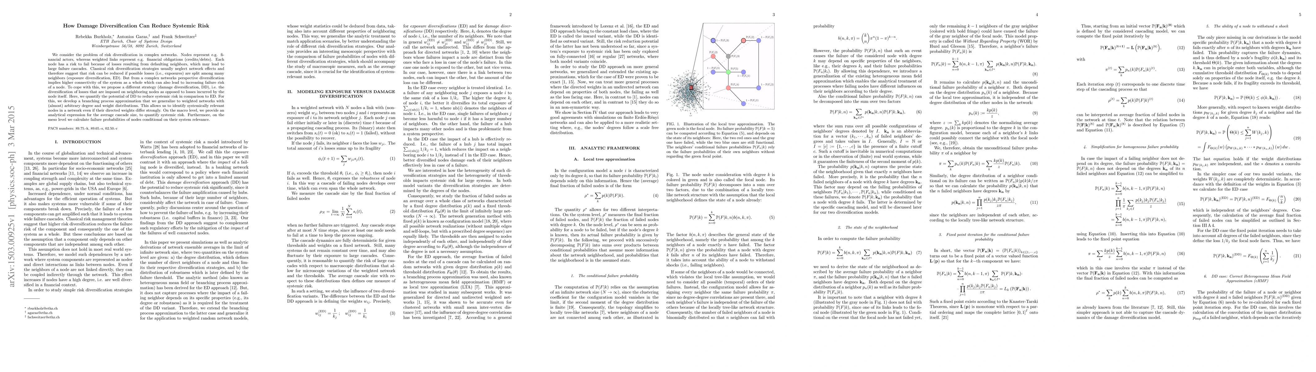 This paper proposes damage diversification (DD) as a strategy to reduce systemic risk in complex networks, contrasting it with exposure diversification (ED). It develops a branching process approximation to analyze the effectiveness of DD in weighted networks, providing analytical expressions for average cascade size and failure probabilities of systemically relevant nodes.