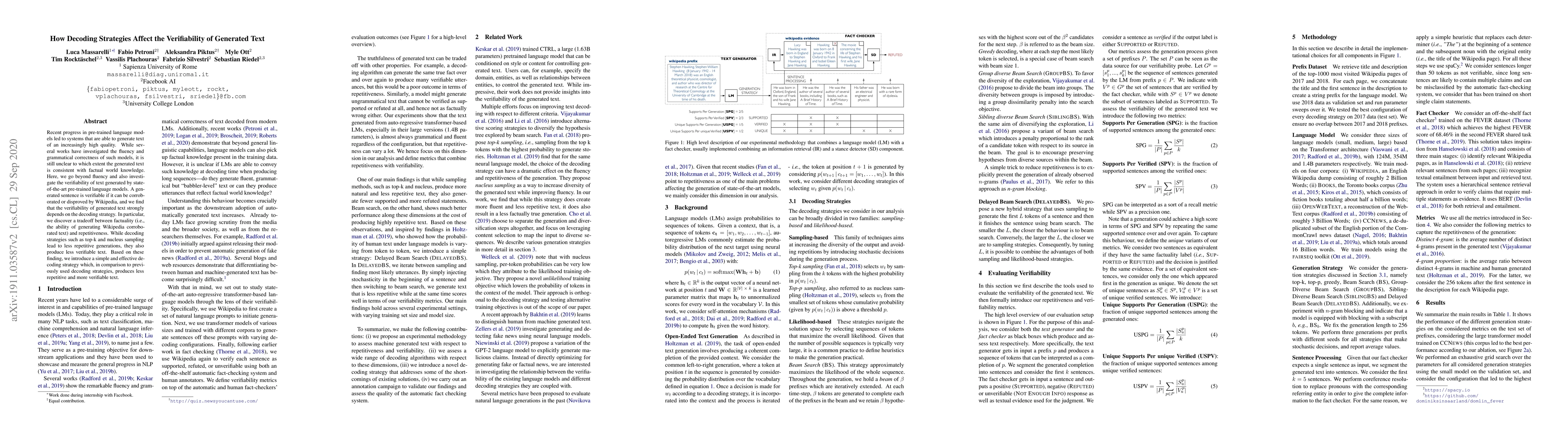 This paper investigates how different decoding strategies impact the verifiability of text generated by pre-trained language models, finding a tradeoff between factuality and repetitiveness. It proposes a new decoding strategy that generates less repetitive yet more verifiable text compared to existing methods.