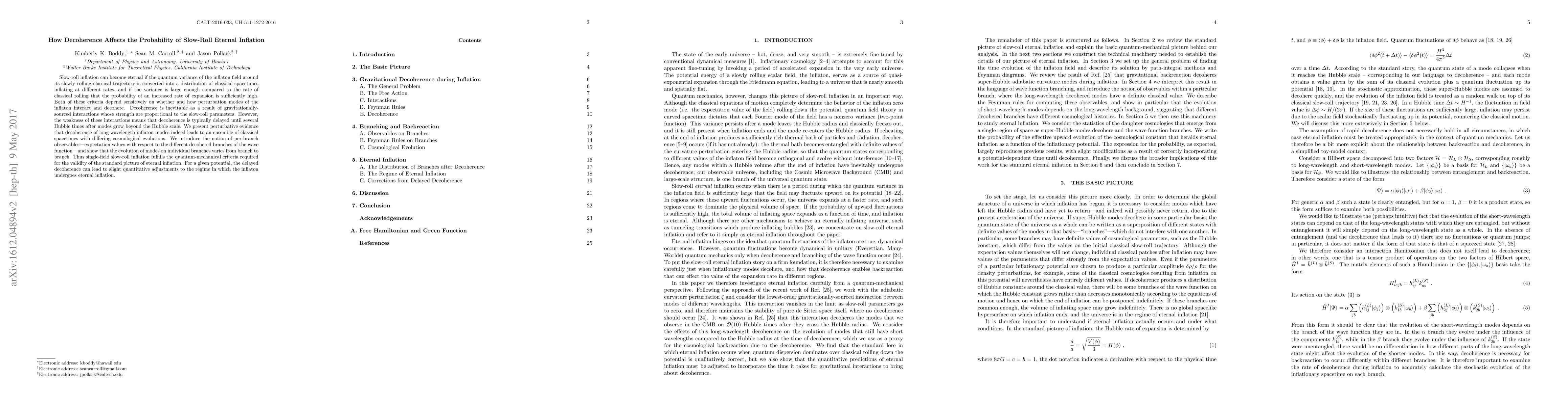This paper investigates how decoherence influences the probability of slow-roll eternal inflation. It finds that delayed decoherence of long-wavelength inflaton modes results in an ensemble of classical spacetimes with varying expansion rates, thus supporting the standard picture of eternal inflation.