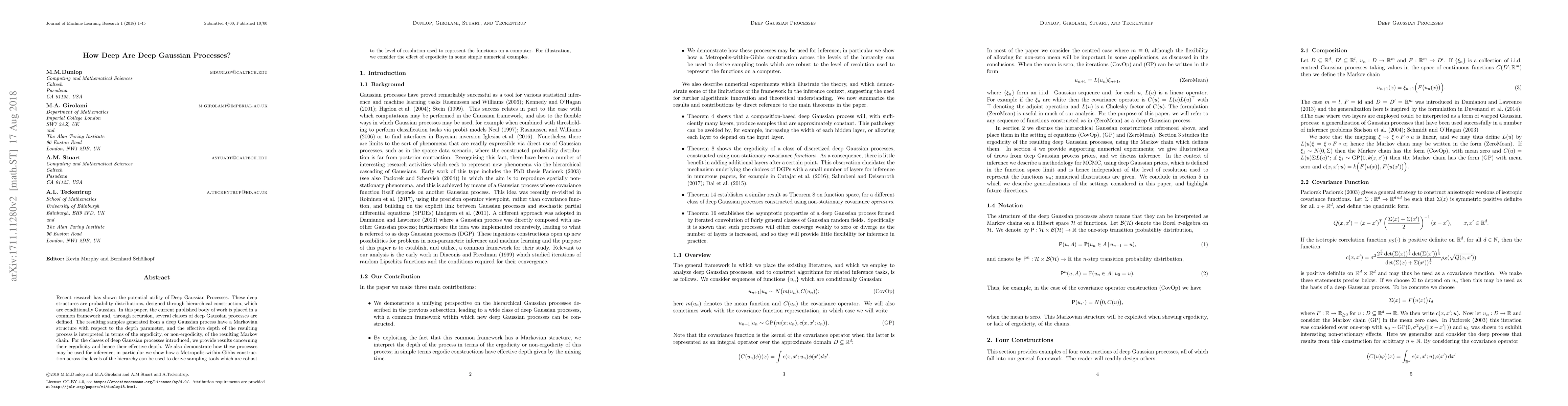 Recent research has shown the potential utility of Deep Gaussian Processes. These deep structures are probability distributions, designed through hierarchical construction, which are conditionally Gaussian. In this paper, the current published body of work is placed in a common framework and, through recursion, several classes of deep Gaussian processes are defined. The resulting samples generated from a deep Gaussian process have a Markovian structure with respect to the depth parameter, and the effective depth of the resulting process is interpreted in terms of the ergodicity, or non-ergodicity, of the resulting Markov chain. For the classes of deep Gaussian processes introduced, we provide results concerning their ergodicity and hence their effective depth. We also demonstrate how these processes may be used for inference; in particular we show how a Metropolis-within-Gibbs construction across the levels of the hierarchy can be used to derive sampling tools which are robust to the level of resolution used to represent the functions on a computer. For illustration, we consider the effect of ergodicity in some simple numerical examples.
