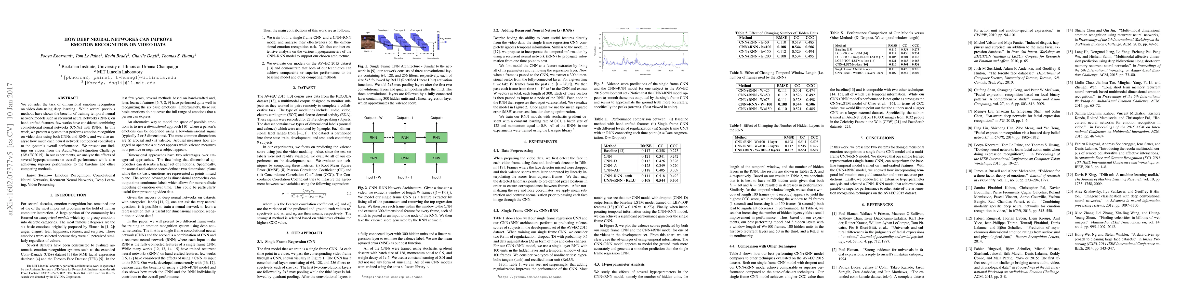 This research proposes a system combining convolutional and recurrent neural networks for improved emotion recognition in video data, achieving superior results compared to baselines and analyzing the contributions of each neural network component. Experiments on the AV+EC2015 dataset demonstrate the system's effectiveness.