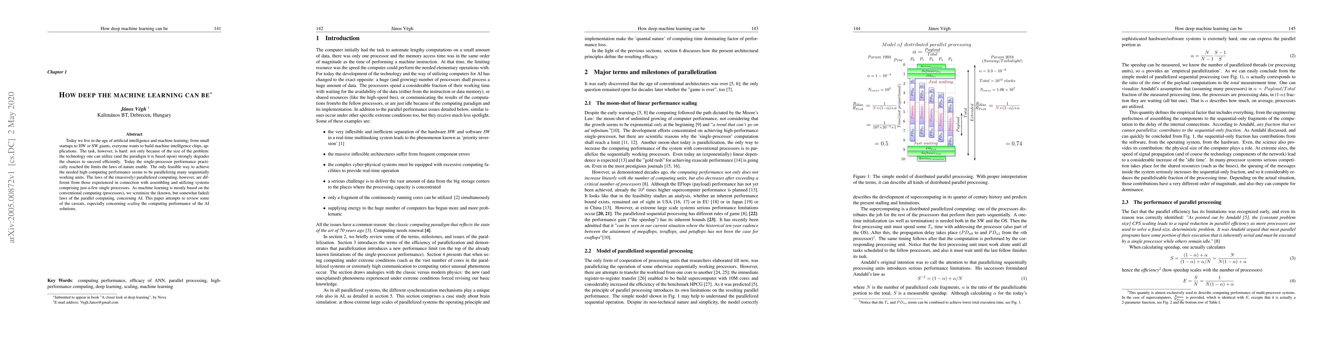 Today we live in the age of artificial intelligence and machine learning; from small startups to HW or SW giants, everyone wants to build machine intelligence chips, applications. The task, however, is hard: not only because of the size of the problem: the technology one can utilize (and the paradigm it is based upon) strongly degrades the chances to succeed efficiently. Today the single-processor performance practically reached the limits the laws of nature enable. The only feasible way to achieve the needed high computing performance seems to be parallelizing many sequentially working units. The laws of the (massively) parallelized computing, however, are different from those experienced in connection with assembling and utilizing systems comprising just-a-few single processors. As machine learning is mostly based on the conventional computing (processors), we scrutinize the (known, but somewhat faded) laws of the parallel computing, concerning AI. This paper attempts to review some of the caveats, especially concerning scaling the computing performance of the AI solutions.