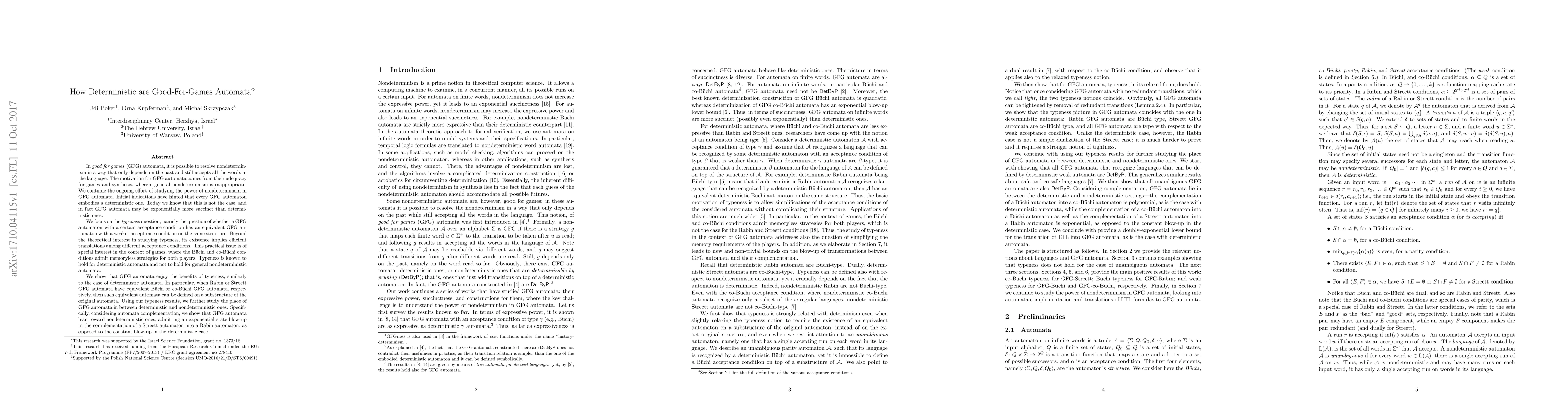In GFG automata, it is possible to resolve nondeterminism in a way that only depends on the past and still accepts all the words in the language. The motivation for GFG automata comes from their adequacy for games and synthesis, wherein general nondeterminism is inappropriate. We continue the ongoing effort of studying the power of nondeterminism in GFG automata. Initial indications have hinted that every GFG automaton embodies a deterministic one. Today we know that this is not the case, and in fact GFG automata may be exponentially more succinct than deterministic ones. We focus on the typeness question, namely the question of whether a GFG automaton with a certain acceptance condition has an equivalent GFG automaton with a weaker acceptance condition on the same structure. Beyond the theoretical interest in studying typeness, its existence implies efficient translations among different acceptance conditions. This practical issue is of special interest in the context of games, where the Buchi and co-Buchi conditions admit memoryless strategies for both players. Typeness is known to hold for deterministic automata and not to hold for general nondeterministic automata. We show that GFG automata enjoy the benefits of typeness, similarly to the case of deterministic automata. In particular, when Rabin or Streett GFG automata have equivalent Buchi or co-Buchi GFG automata, respectively, then such equivalent automata can be defined on a substructure of the original automata. Using our typeness results, we further study the place of GFG automata in between deterministic and nondeterministic ones. Specifically, considering automata complementation, we show that GFG automata lean toward nondeterministic ones, admitting an exponential state blow-up in the complementation of a Streett automaton into a Rabin automaton, as opposed to the constant blow-up in the deterministic case.