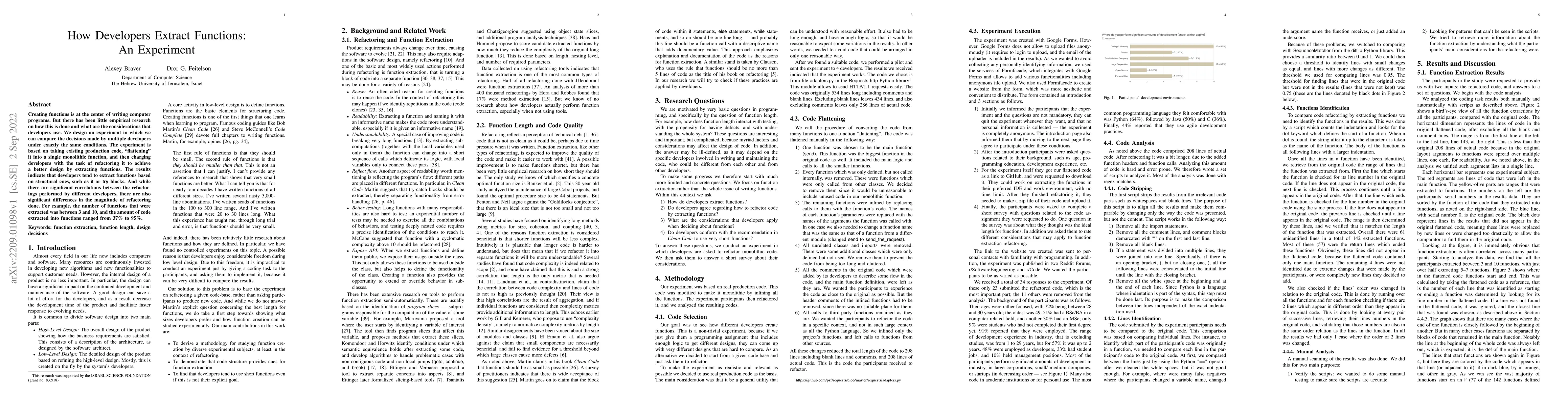 This study investigates how developers extract functions from monolithic code through an experiment where participants refactor existing production code. Results show that developers primarily use structural cues like 'if' or 'try' blocks to guide their refactoring, with significant variations in the extent of refactoring, ranging from 37% to 95% of code extracted into functions.