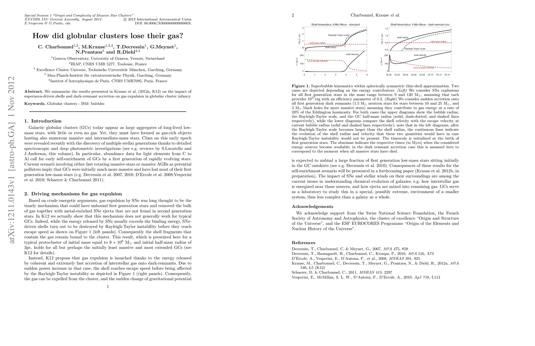 Research suggests that gas loss in globular clusters was driven by supernova-driven shells and dark-remnant accretion during their infancy. This process likely occurred through a combination of shock waves and gravitational accretion.