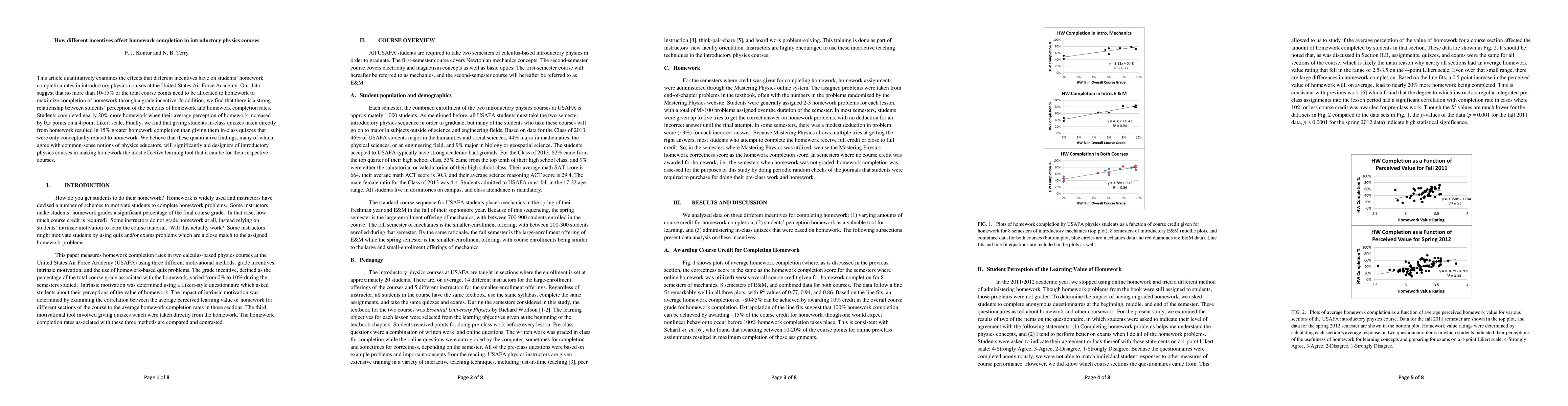 This study investigates how various incentives impact homework completion in introductory physics courses, finding that allocating 10-15% of course points to homework maximizes completion rates. Additionally, students' perceived benefits of homework correlate strongly with completion rates, with a 20% increase for every 0.5-point rise in perception.