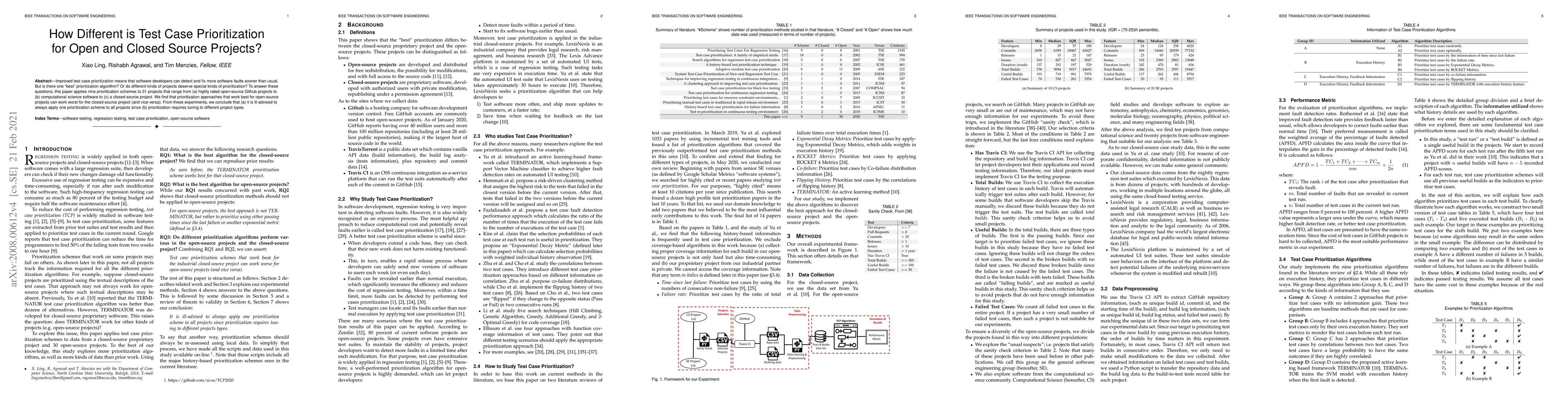 This paper investigates the effectiveness of various test case prioritization schemes across different types of software projects, finding that no single approach works best universally. It concludes that prioritization strategies must be tailored to the specific characteristics of open-source versus closed-source projects.