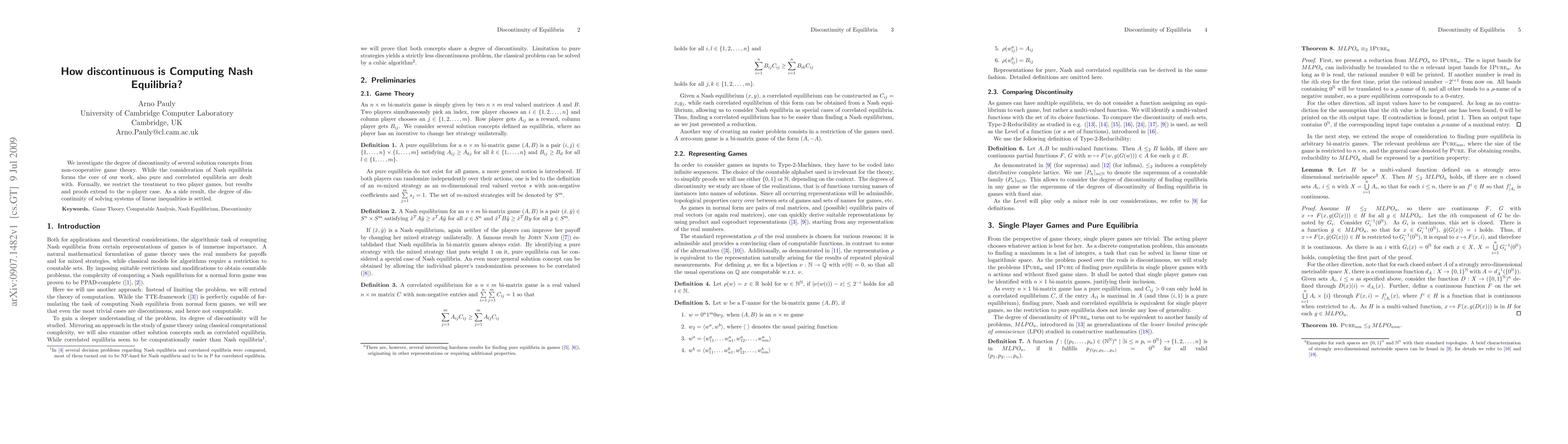 This paper investigates the degree of discontinuity of various solution concepts in non-cooperative game theory, including Nash equilibria, with key findings on their stability in two-player games.