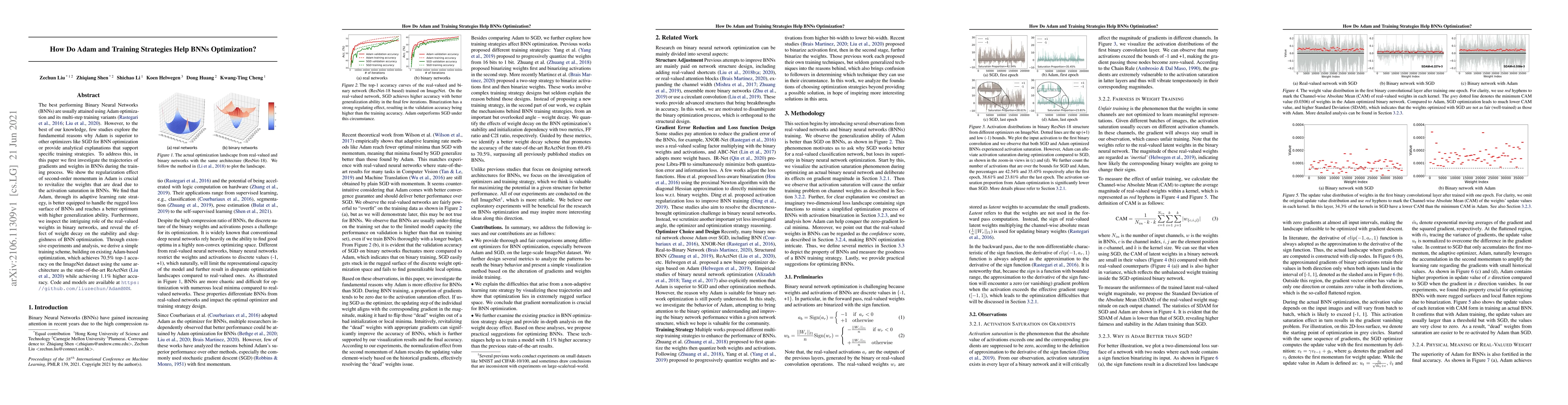 The best performing Binary Neural Networks (BNNs) are usually attained using Adam optimization and its multi-step training variants. However, to the best of our knowledge, few studies explore the fundamental reasons why Adam is superior to other optimizers like SGD for BNN optimization or provide analytical explanations that support specific training strategies. To address this, in this paper we first investigate the trajectories of gradients and weights in BNNs during the training process. We show the regularization effect of second-order momentum in Adam is crucial to revitalize the weights that are dead due to the activation saturation in BNNs. We find that Adam, through its adaptive learning rate strategy, is better equipped to handle the rugged loss surface of BNNs and reaches a better optimum with higher generalization ability. Furthermore, we inspect the intriguing role of the real-valued weights in binary networks, and reveal the effect of weight decay on the stability and sluggishness of BNN optimization. Through extensive experiments and analysis, we derive a simple training scheme, building on existing Adam-based optimization, which achieves 70.5% top-1 accuracy on the ImageNet dataset using the same architecture as the state-of-the-art ReActNet while achieving 1.1% higher accuracy. Code and models are available at https://github.com/liuzechun/AdamBNN.