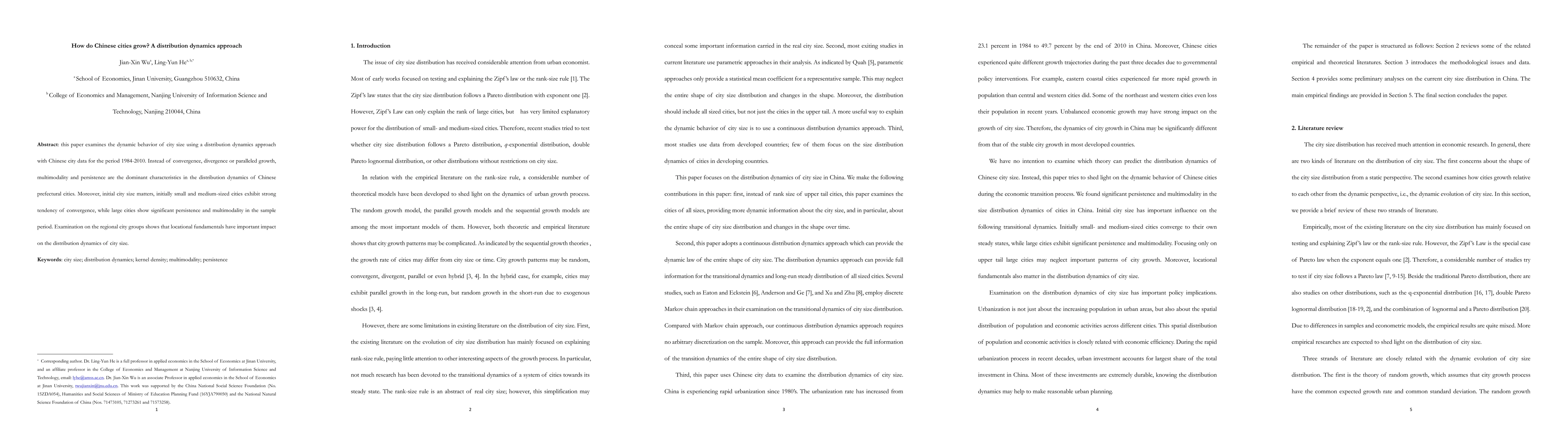 This paper examines the dynamic behavior of city size using a distribution dynamics approach with Chinese city data for the period 1984-2010. Instead of convergence, divergence or paralleled growth, multimodality and persistence are the dominant characteristics in the distribution dynamics of Chinese prefectural cities. Moreover, initial city size matters, initially small and medium-sized cities exhibit strong tendency of convergence, while large cities show significant persistence and multimodality in the sample period. Examination on the regional city groups shows that locational fundamentals have important impact on the distribution dynamics of city size.