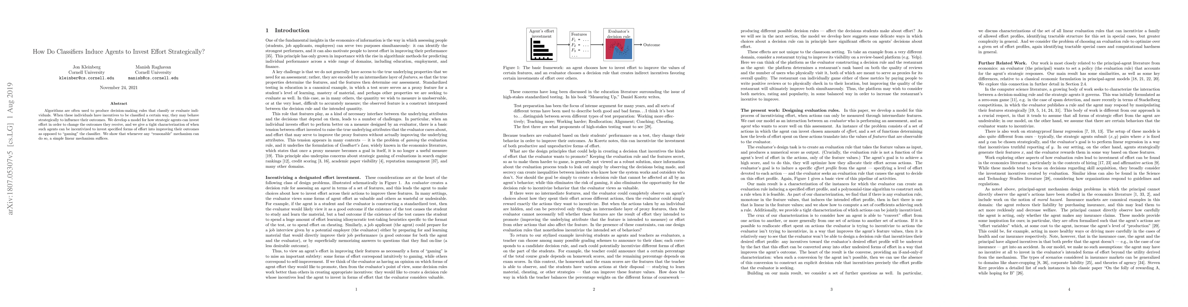 This paper develops a model for strategic agents to invest effort to influence classifier outcomes, showing that a simple linear mechanism can incentivize specified effort rather than manipulation, providing a tight characterization of such conditions.