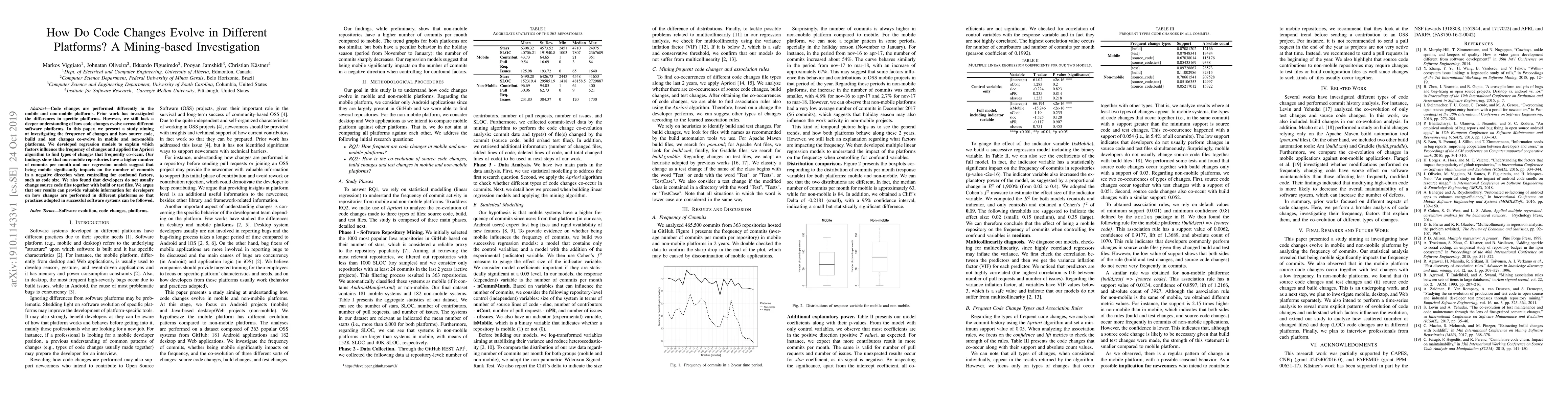 This study investigates the evolution of code changes across mobile and non-mobile platforms, revealing that non-mobile repositories have more frequent commits per month. The research found that mobile platforms tend to have fewer commits, and source, build, and test changes do not typically co-occur.