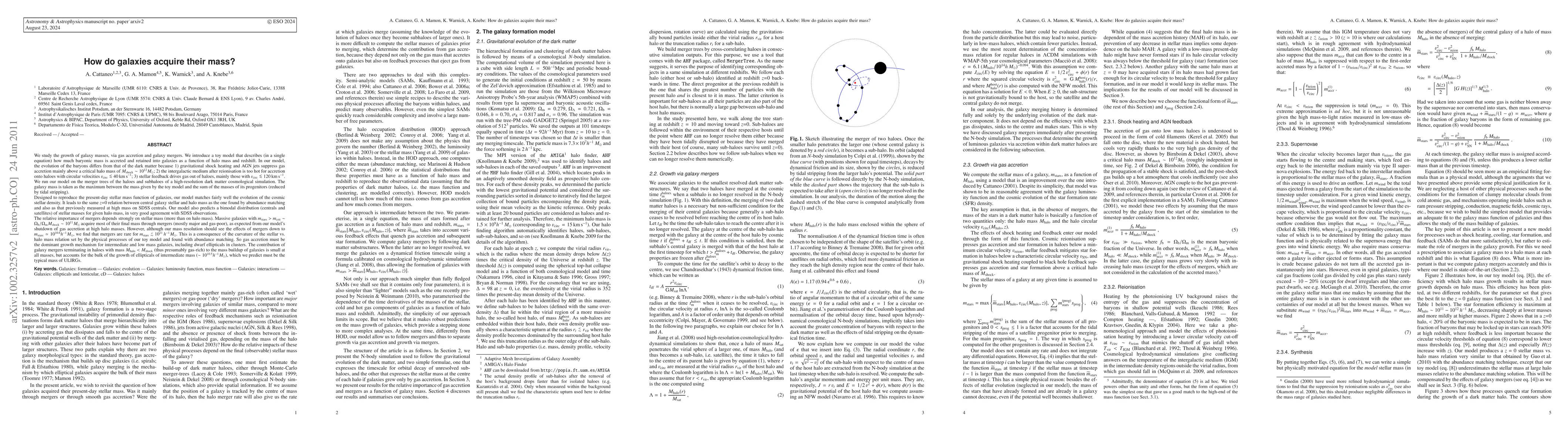 A new model explains how galaxies acquire mass, suggesting gas accretion dominates low-mass galaxy growth while mergers play a key role in high-mass galaxy formation.