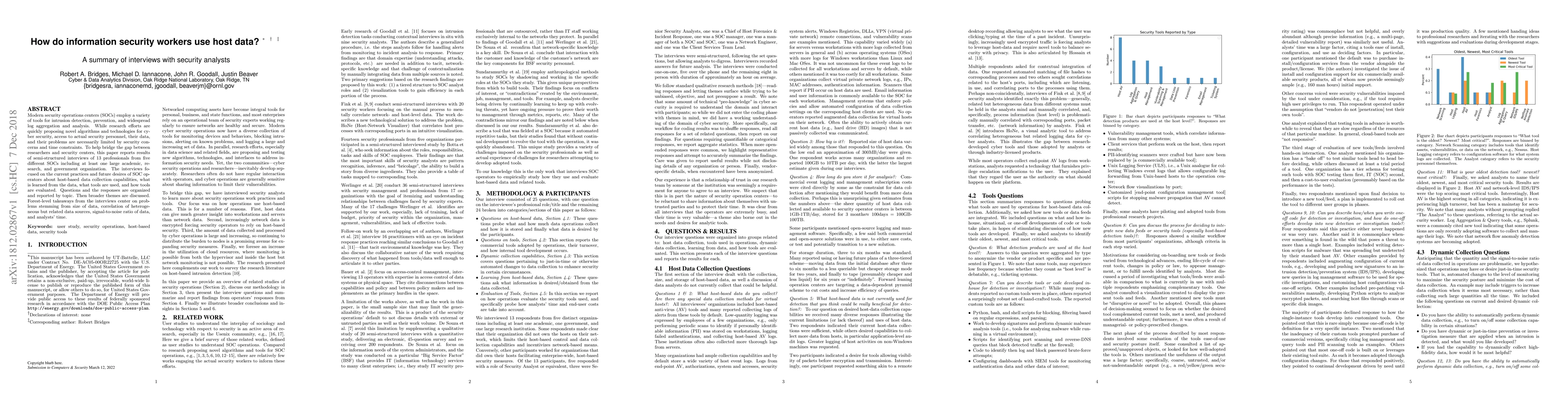 Modern security operations centers (SOCs) employ a variety of tools for intrusion detection, prevention, and widespread log aggregation and analysis. While research efforts are quickly proposing novel algorithms and technologies for cyber security, access to actual security personnel, their data, and their problems are necessarily limited by security concerns and time constraints. To help bridge the gap between researchers and security centers, this paper reports results of semi-structured interviews of 13 professionals from five different SOCs including at least one large academic, research, and government organization. The interviews focused on the current practices and future desires of SOC operators about host-based data collection capabilities, what is learned from the data, what tools are used, and how tools are evaluated. Questions and the responses are organized and reported by topic. Then broader themes are discussed. Forest-level takeaways from the interviews center on problems stemming from size of data, correlation of heterogeneous but related data sources, signal-to-noise ratio of data, and analysts' time.