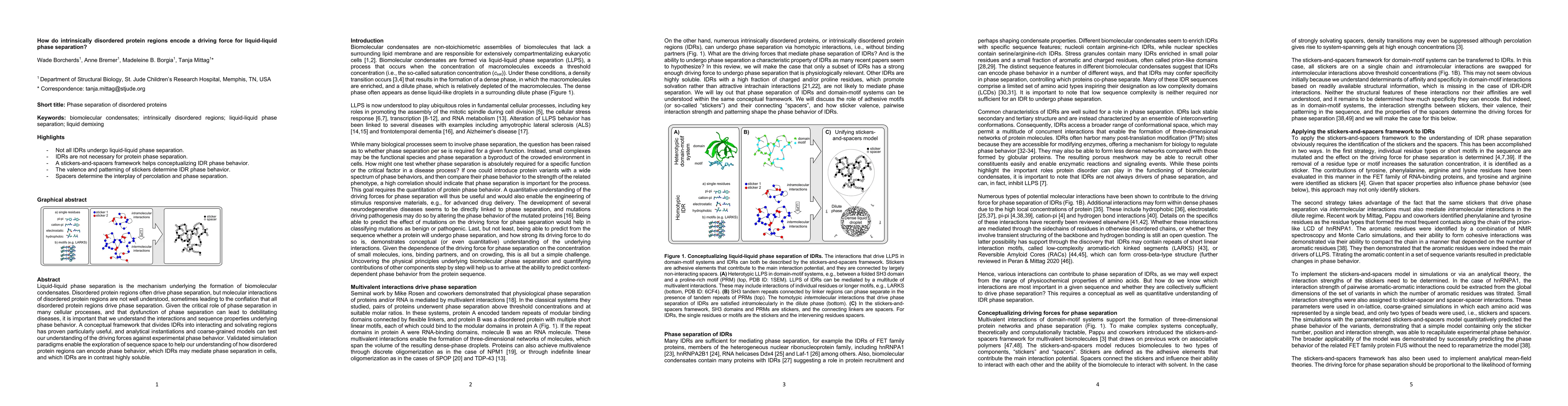 This paper explores how intrinsically disordered protein regions (IDRs) drive liquid-liquid phase separation, emphasizing the need to differentiate between IDRs that promote phase separation and those that remain soluble. It proposes a framework to categorize IDRs based on their interactions and uses simulations to understand the sequence properties that encode phase behavior.