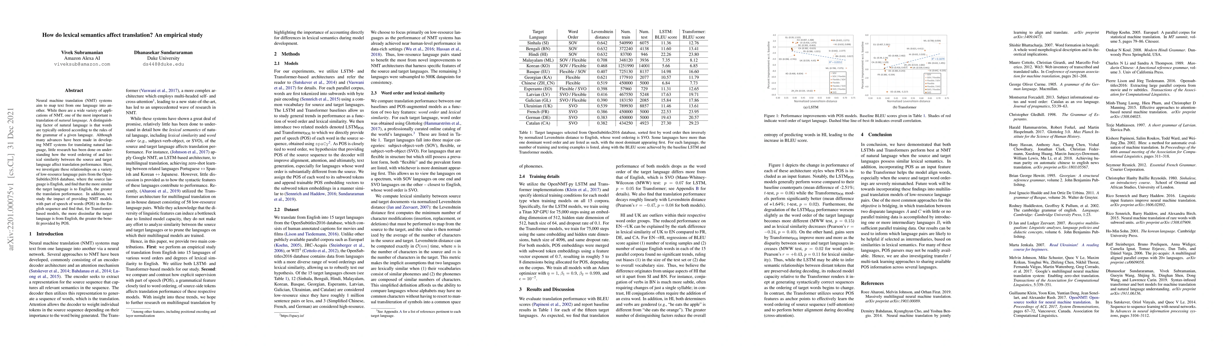 Neural machine translation (NMT) systems aim to map text from one language into another. While there are a wide variety of applications of NMT, one of the most important is translation of natural language. A distinguishing factor of natural language is that words are typically ordered according to the rules of the grammar of a given language. Although many advances have been made in developing NMT systems for translating natural language, little research has been done on understanding how the word ordering of and lexical similarity between the source and target language affect translation performance. Here, we investigate these relationships on a variety of low-resource language pairs from the OpenSubtitles2016 database, where the source language is English, and find that the more similar the target language is to English, the greater the translation performance. In addition, we study the impact of providing NMT models with part of speech of words (POS) in the English sequence and find that, for Transformer-based models, the more dissimilar the target language is from English, the greater the benefit provided by POS.