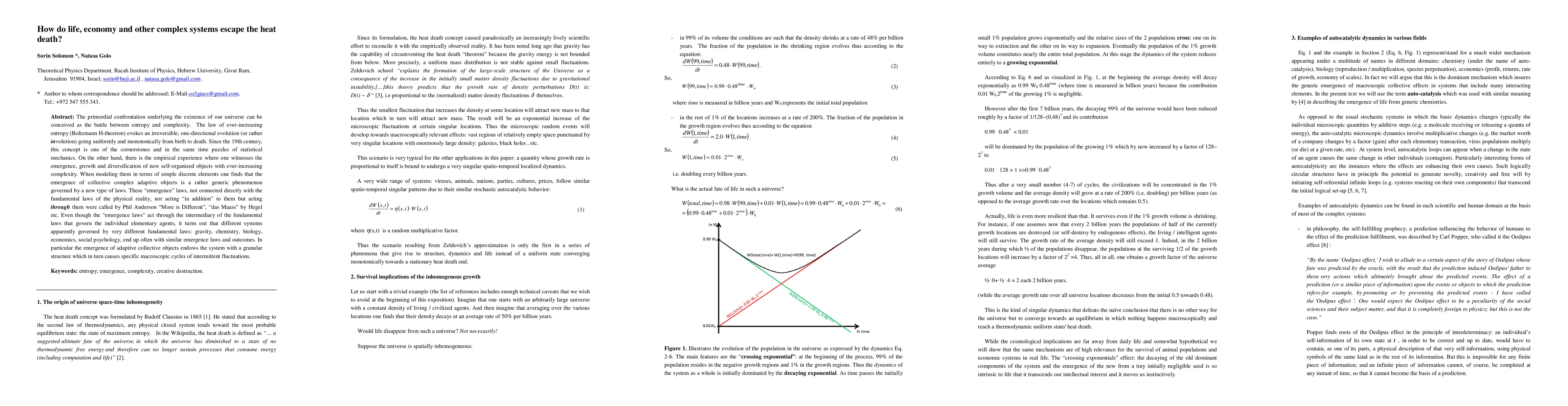 The primordial confrontation underlying the existence of our universe can be conceived as the battle between entropy and complexity. The law of ever-increasing entropy (Boltzmann H-theorem) evokes an irreversible, one-directional evolution (or rather involution) going uniformly and monotonically from birth to death. Since the 19th century, this concept is one of the cornerstones and in the same time puzzles of statistical mechanics. On the other hand, there is the empirical experience where one witnesses the emergence, growth and diversification of new self-organized objects with ever-increasing complexity. When modeling them in terms of simple discrete elements one finds that the emergence of collective complex adaptive objects is a rather generic phenomenon governed by a new type of laws. These 'emergence' laws, not connected directly with the fundamental laws of the physical reality, nor acting 'in addition' to them but acting through them were called by Phil Anderson 'More is Different', 'das Maass' by Hegel etc. Even though the 'emergence laws' act through the intermediary of the fundamental laws that govern the individual elementary agents, it turns out that different systems apparently governed by very different fundamental laws: gravity, chemistry, biology, economics, social psychology, end up often with similar emergence laws and outcomes. In particular the emergence of adaptive collective objects endows the system with a granular structure which in turn causes specific macroscopic cycles of intermittent fluctuations.