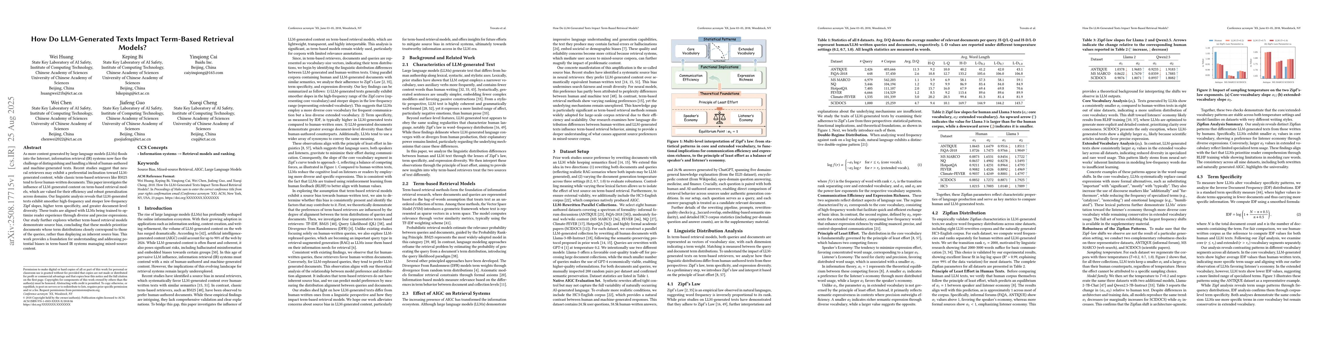 As more content generated by large language models (LLMs) floods into the Internet, information retrieval (IR) systems now face the challenge of distinguishing and handling a blend of human-authored and machine-generated texts. Recent studies suggest that neural retrievers may exhibit a preferential inclination toward LLM-generated content, while classic term-based retrievers like BM25 tend to favor human-written documents. This paper investigates the influence of LLM-generated content on term-based retrieval models, which are valued for their efficiency and robust generalization across domains. Our linguistic analysis reveals that LLM-generated texts exhibit smoother high-frequency and steeper low-frequency Zipf slopes, higher term specificity, and greater document-level diversity. These traits are aligned with LLMs being trained to optimize reader experience through diverse and precise expressions. Our study further explores whether term-based retrieval models demonstrate source bias, concluding that these models prioritize documents whose term distributions closely correspond to those of the queries, rather than displaying an inherent source bias. This work provides a foundation for understanding and addressing potential biases in term-based IR systems managing mixed-source content.