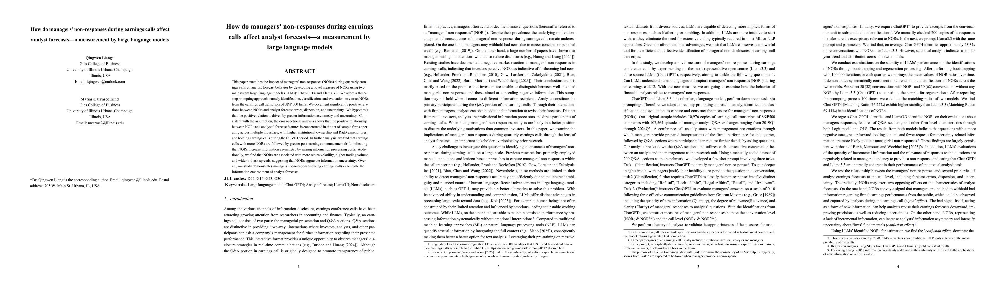 This research distinguishes itself by quantifying the impact of managers' non-responses during earnings calls on analyst forecasts, identifying specific firm characteristics that amplify these effects, and linking NORs to increased market uncertainty.