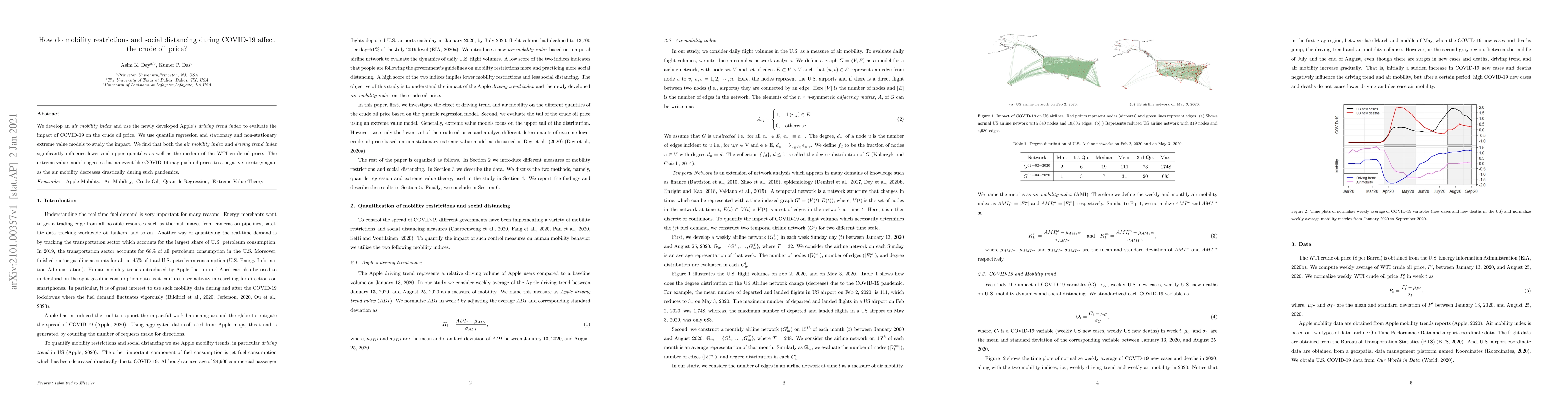 This study uses an air mobility index and Apple's driving trend index to assess COVID-19's impact on WTI crude oil prices, finding significant effects across various price quantiles. The extreme value model indicates that severe pandemics like COVID-19 could drive oil prices into negative territory due to drastic reductions in air mobility.