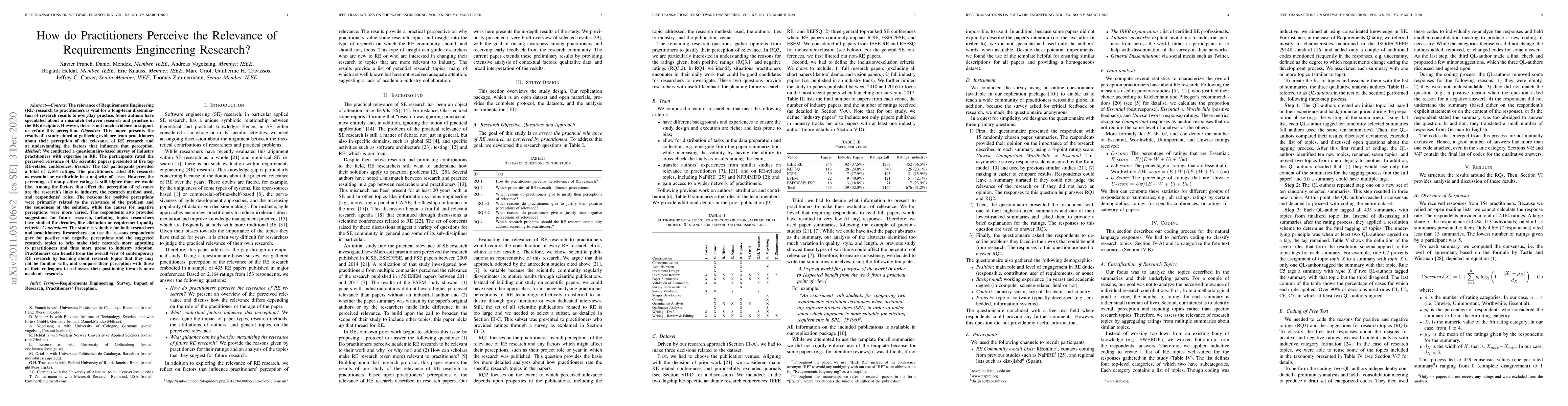 This study investigates practitioners' perceptions of the relevance of Requirements Engineering research, finding that while most rate it as essential or worthwhile, a significant portion still views it as irrelevant. Factors influencing this perception include research applicability, methodology, and practitioners' roles.