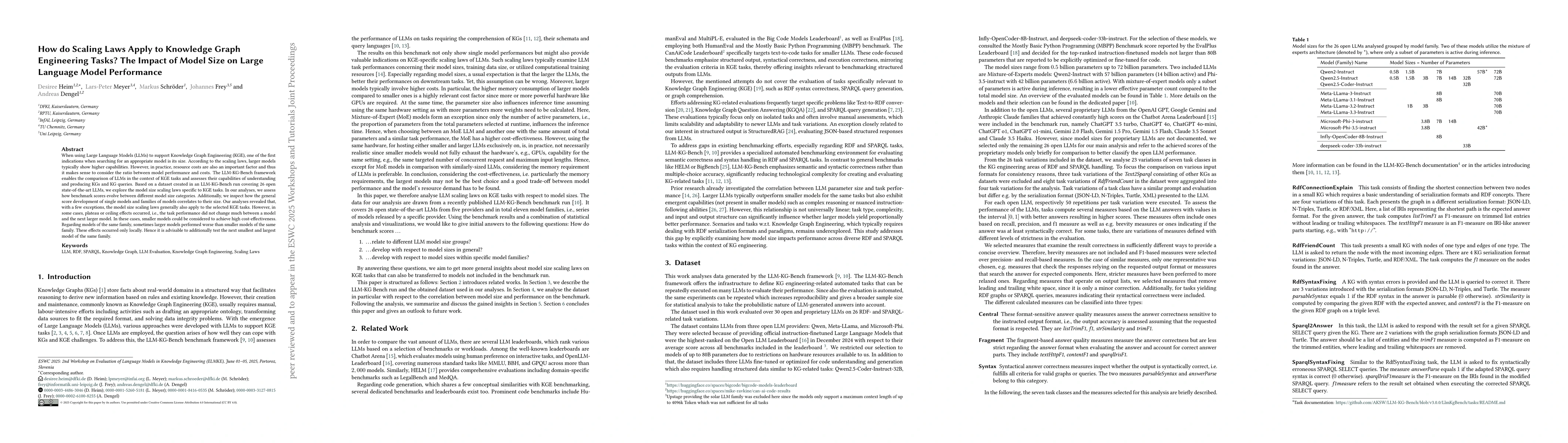Researchers explored how large language models perform in knowledge graph engineering tasks and found that model size scaling laws generally apply, but with exceptions where smaller models can be more cost-effective or even outperform larger models of the same family.