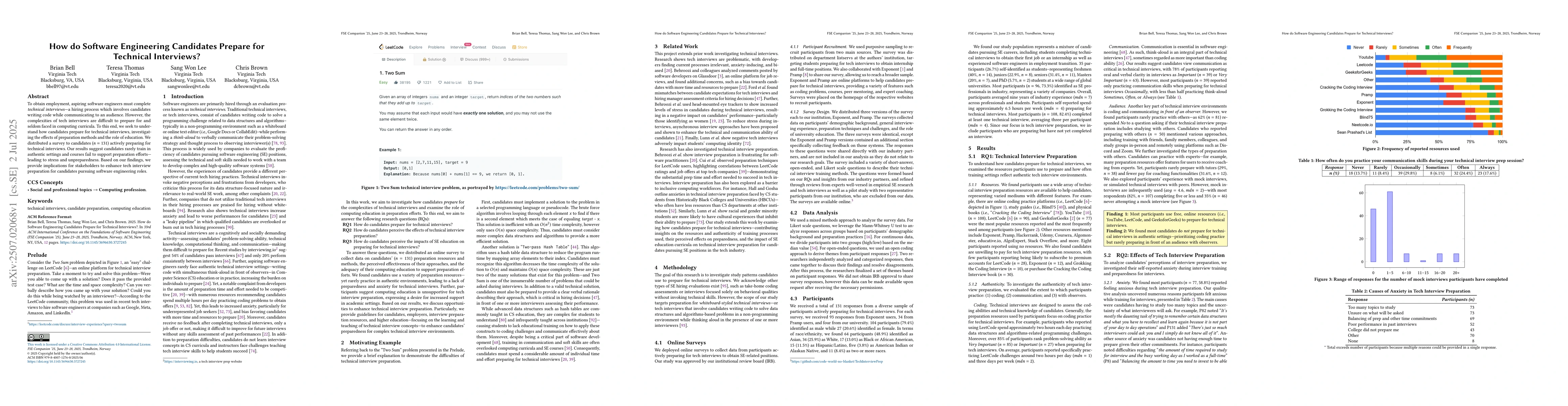 This research highlights the need for improved technical interview preparation methods, addressing anxiety and unpreparedness among candidates, which can benefit both individuals and companies by enhancing the quality of the software workforce.
