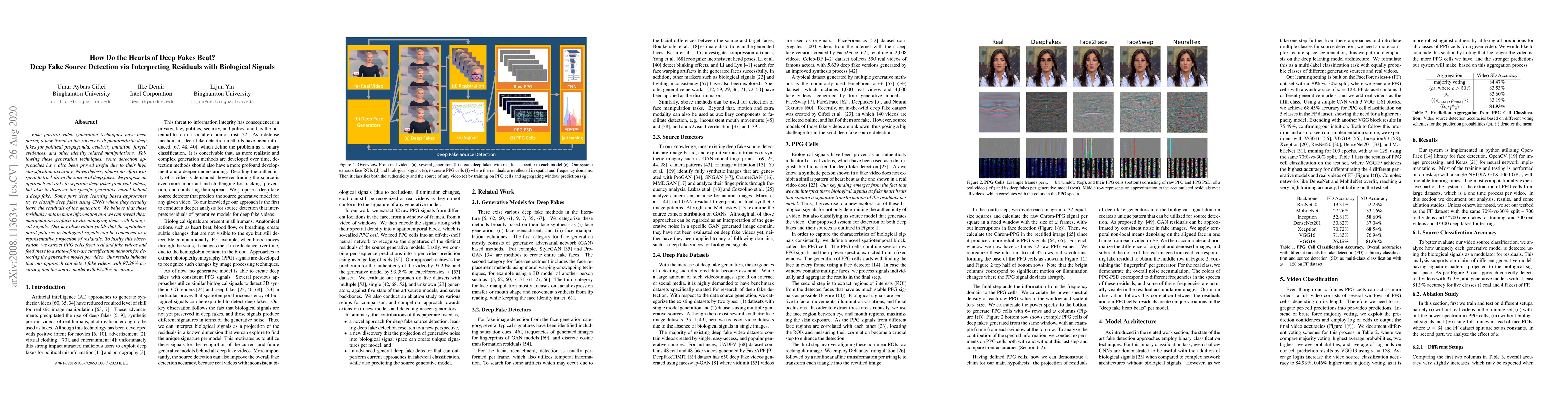 Researchers propose a method to detect deep fakes by analyzing residuals with biological signals, achieving 97.29% accuracy in detecting fake videos and 93.39% accuracy in identifying the source model.