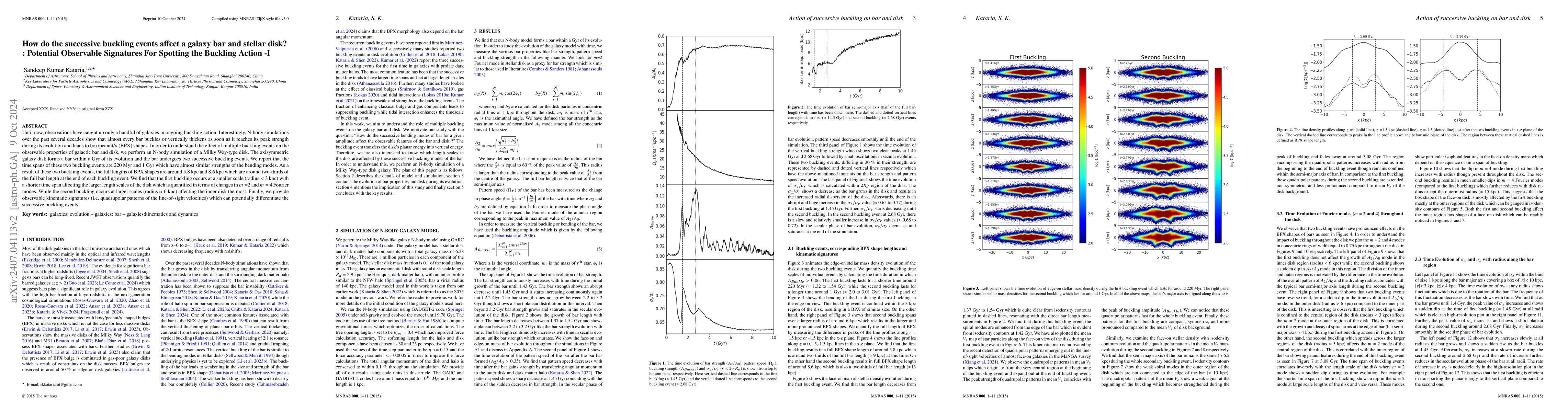 This study examines how successive buckling events in a galaxy bar affect the stellar disk using N-body simulations. The first buckling event occurs at smaller scales with a shorter time span, impacting larger disk length scales. The second event happens at larger scales, mainly affecting the inner disk, leading to observable kinematic signatures like quadrupolar patterns in line-of-sight velocities.