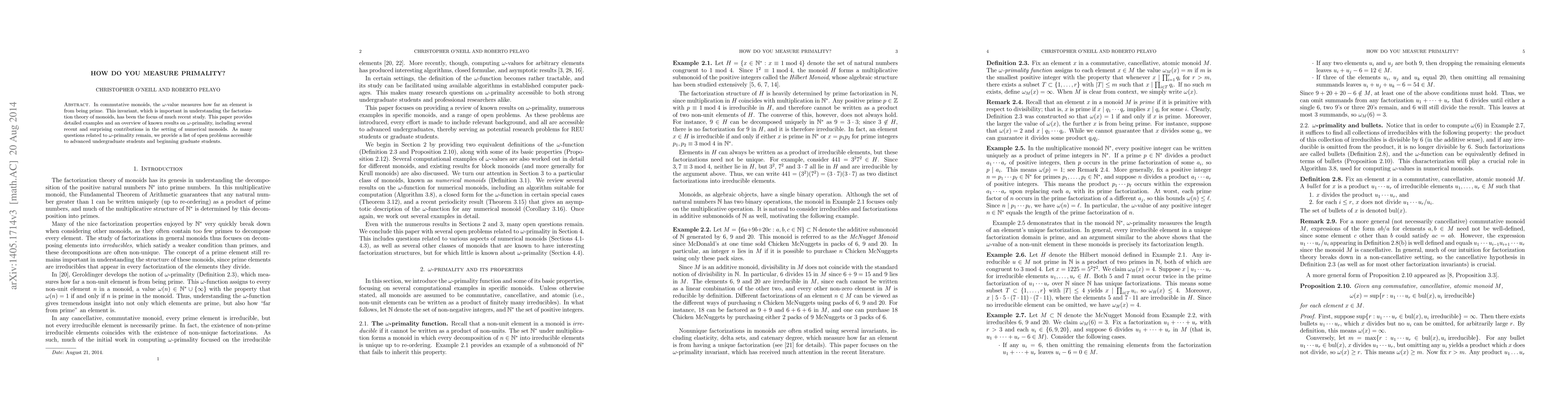 In commutative monoids, the $\omega$-value measures how far an element is from being prime. This invariant, which is important in understanding the factorization theory of monoids, has been the focus of much recent study. This paper provides detailed examples and an overview of known results on $\omega$-primality, including several recent and surprising contributions in the setting of numerical monoids. As many questions related to $\omega$-primality remain, we provide a list of open problems accessible to advanced undergraduate students and beginning graduate students.