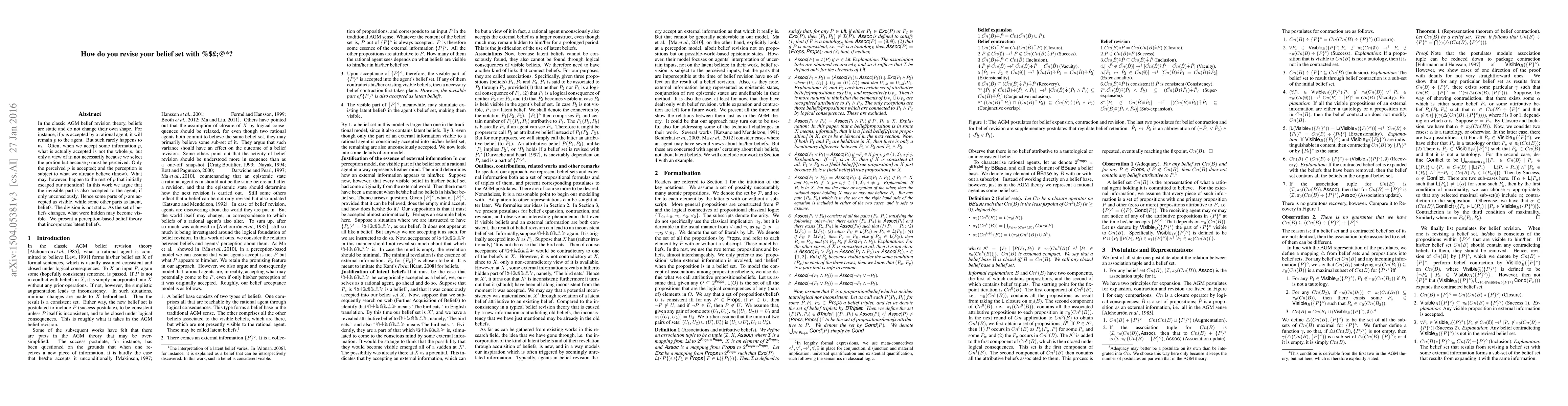This research paper proposes a new perception-based belief theory that acknowledges both visible and latent beliefs, which can change as the set of beliefs evolves. It challenges the classic AGM belief revision theory's assumption that beliefs remain static and only perceptible parts are accepted.