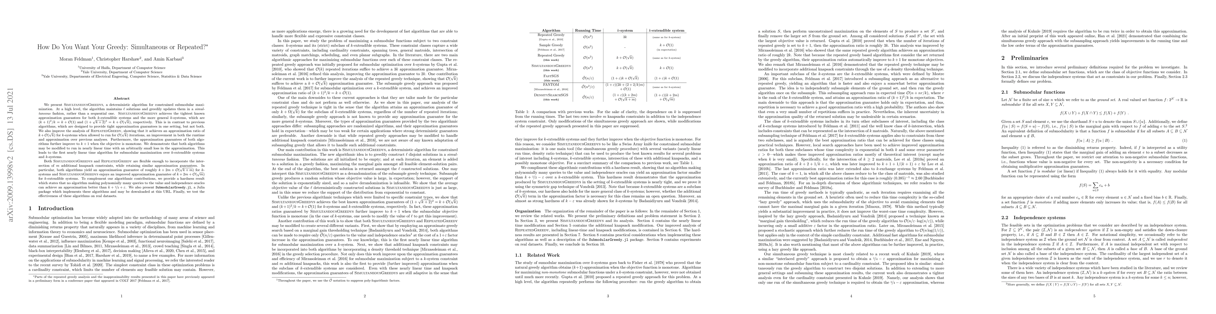 We present SimultaneousGreedys, a deterministic algorithm for constrained submodular maximization. At a high level, the algorithm maintains $\ell$ solutions and greedily updates them in a simultaneous fashion. SimultaneousGreedys achieves the tightest known approximation guarantees for both $k$-extendible systems and the more general $k$-systems, which are $(k+1)^2/k = k + \mathcal{O}(1)$ and $(1 + \sqrt{k+2})^2 = k + \mathcal{O}(\sqrt{k})$, respectively. This is in contrast to previous algorithms, which are designed to provide tight approximation guarantees in one setting, but not both. We also improve the analysis of RepeatedGreedy, showing that it achieves an approximation ratio of $k + \mathcal{O}(\sqrt{k})$ for $k$-systems when allowed to run for $\mathcal{O}(\sqrt{k})$ iterations, an improvement in both the runtime and approximation over previous analyses. We demonstrate that both algorithms may be modified to run in nearly linear time with an arbitrarily small loss in the approximation. Both SimultaneousGreedys and RepeatedGreedy are flexible enough to incorporate the intersection of $m$ additional knapsack constraints, while retaining similar approximation guarantees: both algorithms yield an approximation guarantee of roughly $k + 2m + \mathcal{O}(\sqrt{k+m})$ for $k$-systems and SimultaneousGreedys enjoys an improved approximation guarantee of $k+2m + \mathcal{O}(\sqrt{m})$ for $k$-extendible systems. To complement our algorithmic contributions, we provide a hardness result which states that no algorithm making polynomially many oracle queries can achieve an approximation better than $k + 1/2 + \varepsilon$. We also present SubmodularGreedy.jl, a Julia package which implements these algorithms and may be downloaded at https://github.com/crharshaw/SubmodularGreedy.jl . Finally, we test the effectiveness of these algorithms on real datasets.