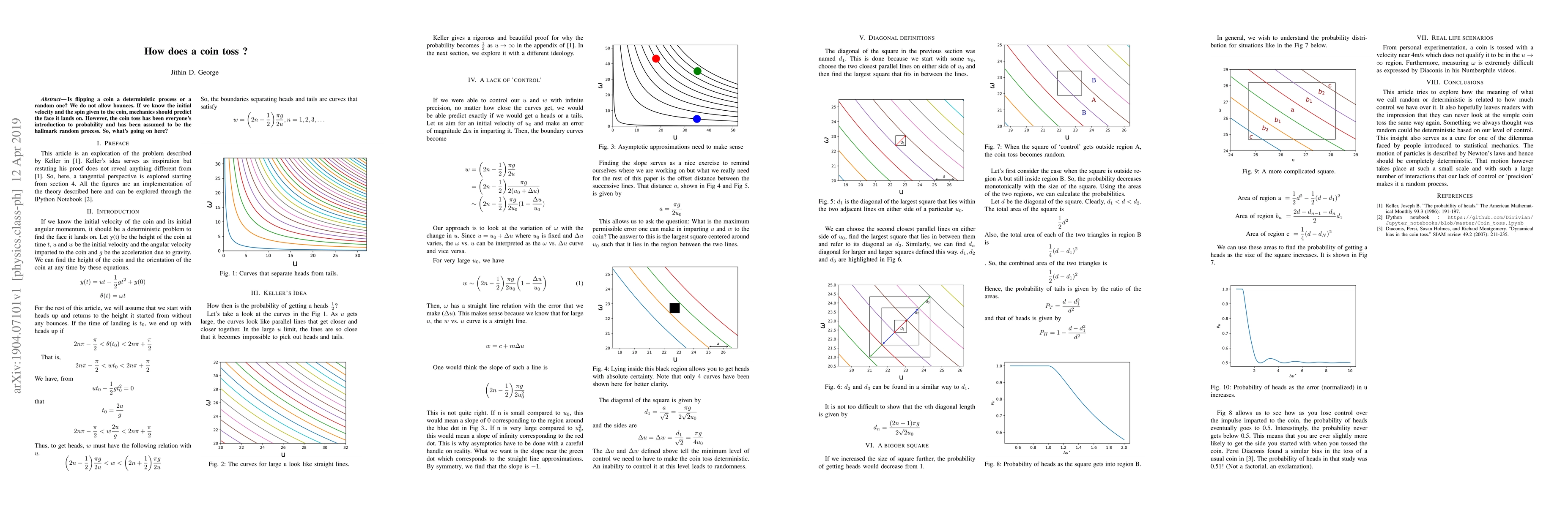 Is flipping a coin a deterministic process or a random one? We do not allow bounces. If we know the initial velocity and the spin given to the coin, mechanics should predict the face it lands on. However, the coin toss has been everyone's introduction to probability and has been assumed to be the hallmark random process. So, what's going on here? This article discusses the problem first brought up by Keller in 1986 using a perspective tangential to the one used by Keller which leads us to new insight about the probability of getting heads.
