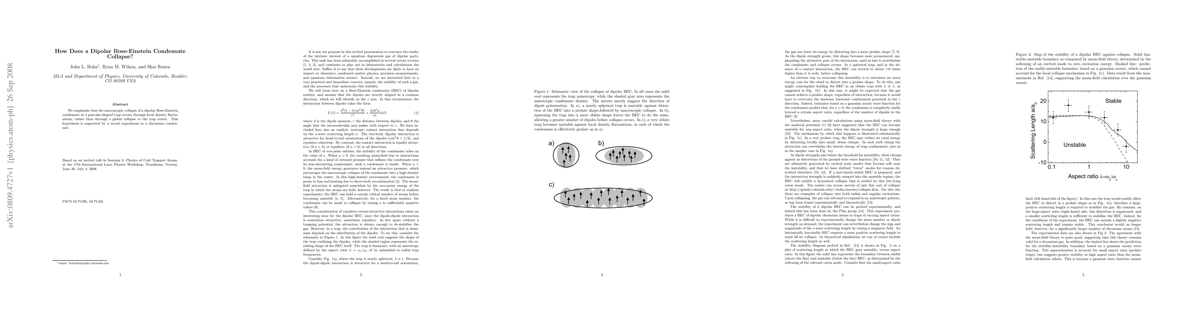 Summary: This study reveals that the collapse of a dipolar Bose-Einstein condensate in a pancake-shaped trap is driven by local density fluctuations instead of a global collapse to the trap center, supported by experimental evidence from a chromium condensate.