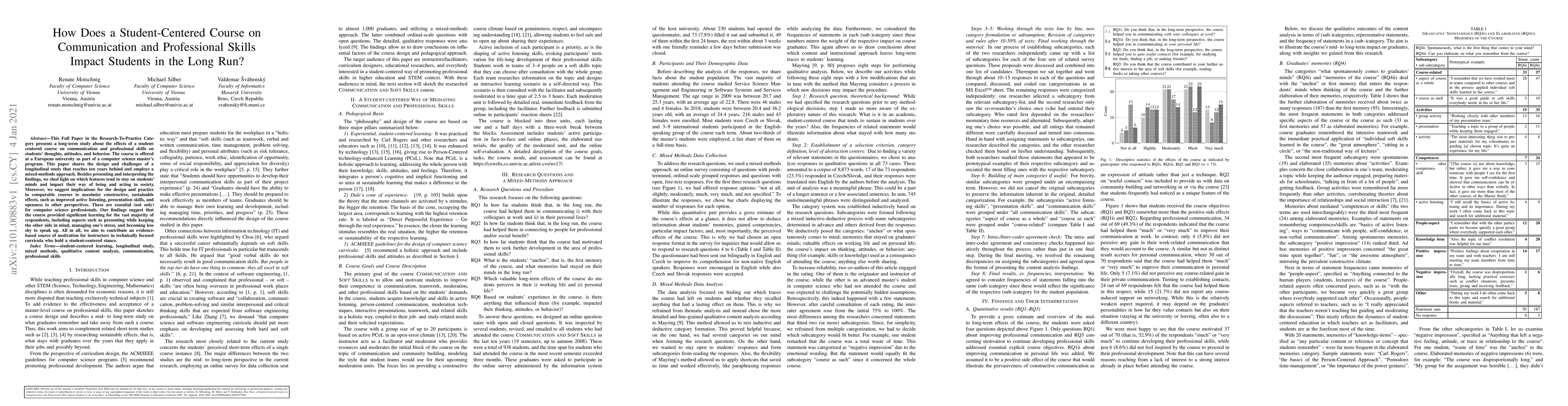 This study investigates the long-term impact of a student-centered communication and professional skills course on computer science master's students, revealing sustained improvements in active listening, presentation skills, and openness to diverse perspectives. The findings suggest significant, positive changes in students' attitudes and behaviors, providing valuable insights for enhancing similar courses.