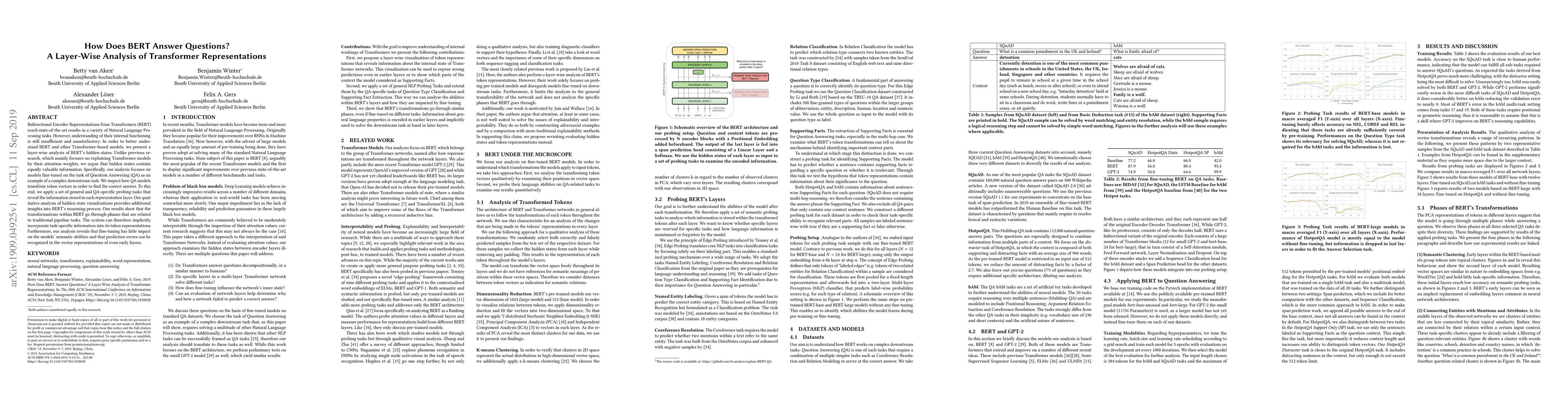 This paper conducts a layer-wise analysis of BERT's hidden states to understand its internal functioning, focusing on fine-tuned models for Question Answering. The study reveals that BERT implicitly incorporates task-specific information and that prediction errors can be detected in early layers, indicating the importance of hidden states beyond attention weights.