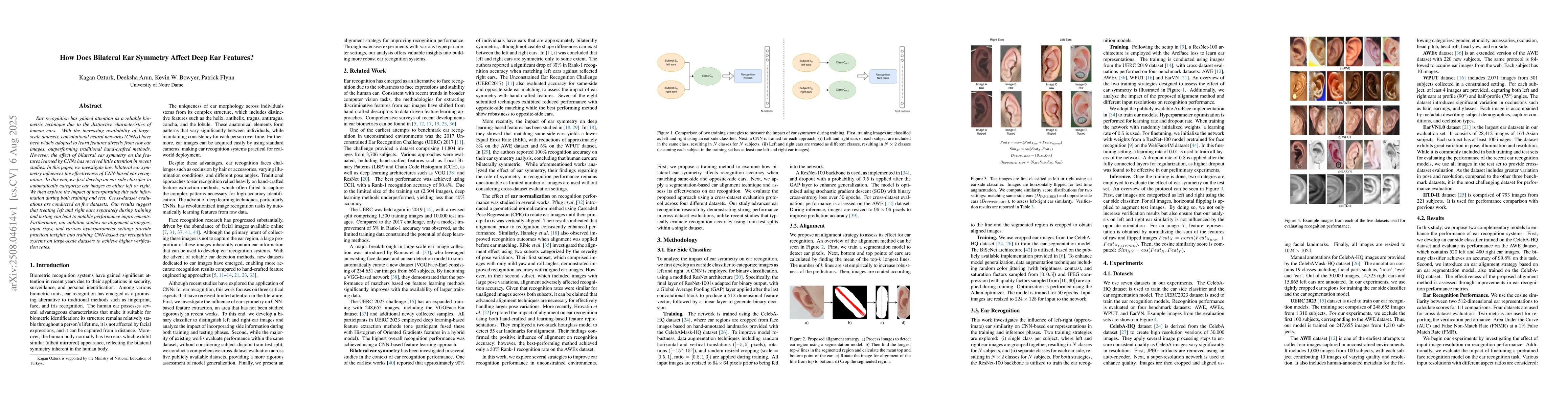 Ear recognition has gained attention as a reliable biometric technique due to the distinctive characteristics of human ears. With the increasing availability of large-scale datasets, convolutional neural networks (CNNs) have been widely adopted to learn features directly from raw ear images, outperforming traditional hand-crafted methods. However, the effect of bilateral ear symmetry on the features learned by CNNs has received little attention in recent studies. In this paper, we investigate how bilateral ear symmetry influences the effectiveness of CNN-based ear recognition. To this end, we first develop an ear side classifier to automatically categorize ear images as either left or right. We then explore the impact of incorporating this side information during both training and test. Cross-dataset evaluations are conducted on five datasets. Our results suggest that treating left and right ears separately during training and testing can lead to notable performance improvements. Furthermore, our ablation studies on alignment strategies, input sizes, and various hyperparameter settings provide practical insights into training CNN-based ear recognition systems on large-scale datasets to achieve higher verification rates.