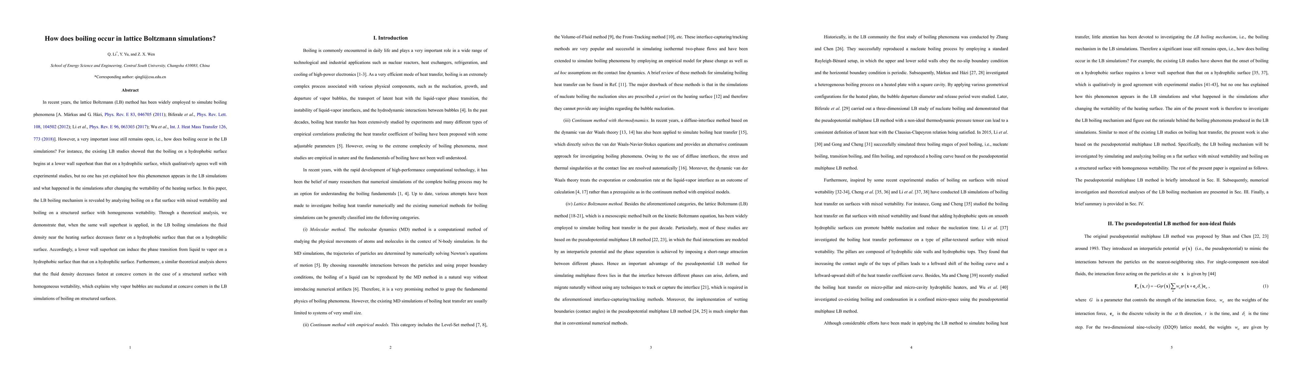 This research explains the boiling mechanism in lattice Boltzmann simulations and its relation to surface wettability.