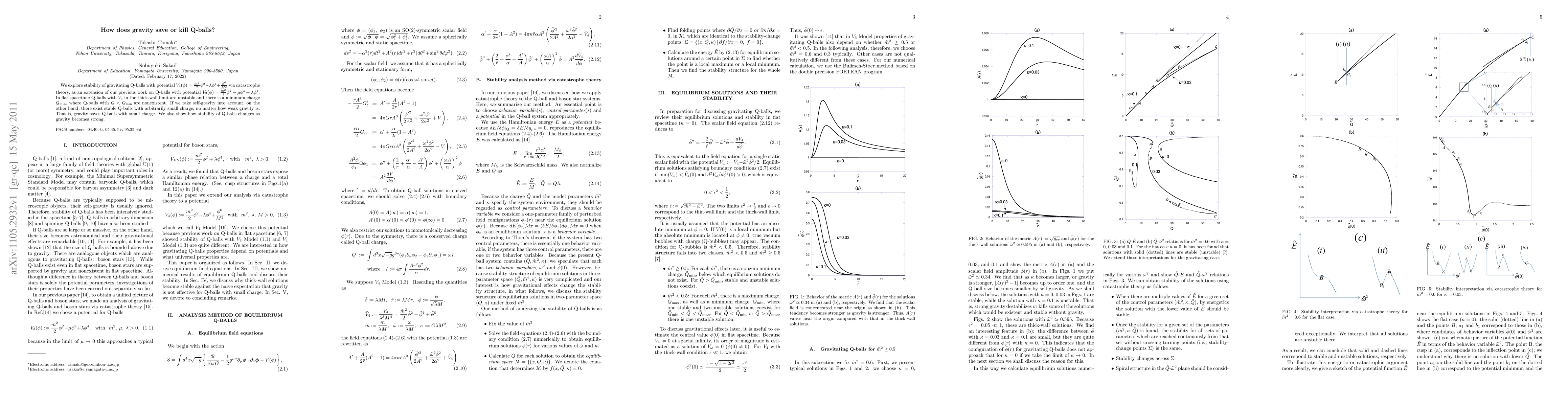 This paper investigates the stability of gravitating Q-balls with a specific potential $V_4(\phi)$ using catastrophe theory. It finds that in flat spacetime, Q-balls with this potential are unstable below a minimum charge, but gravity can stabilize them even with arbitrarily small charge.
